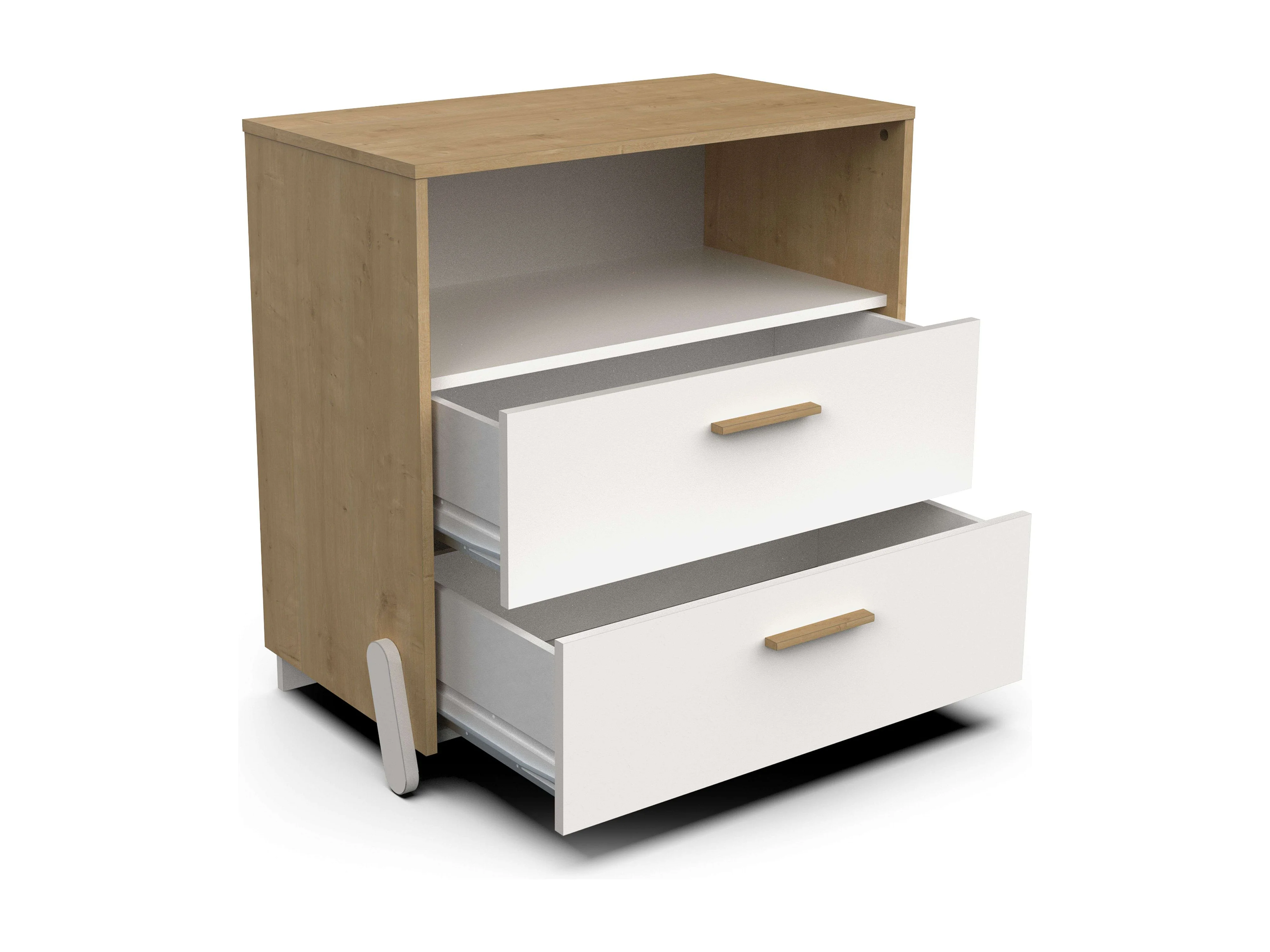 Cómoda Juvenil Naili 2 Cajones Dormitorio Roble y Blanco 73X74 cm