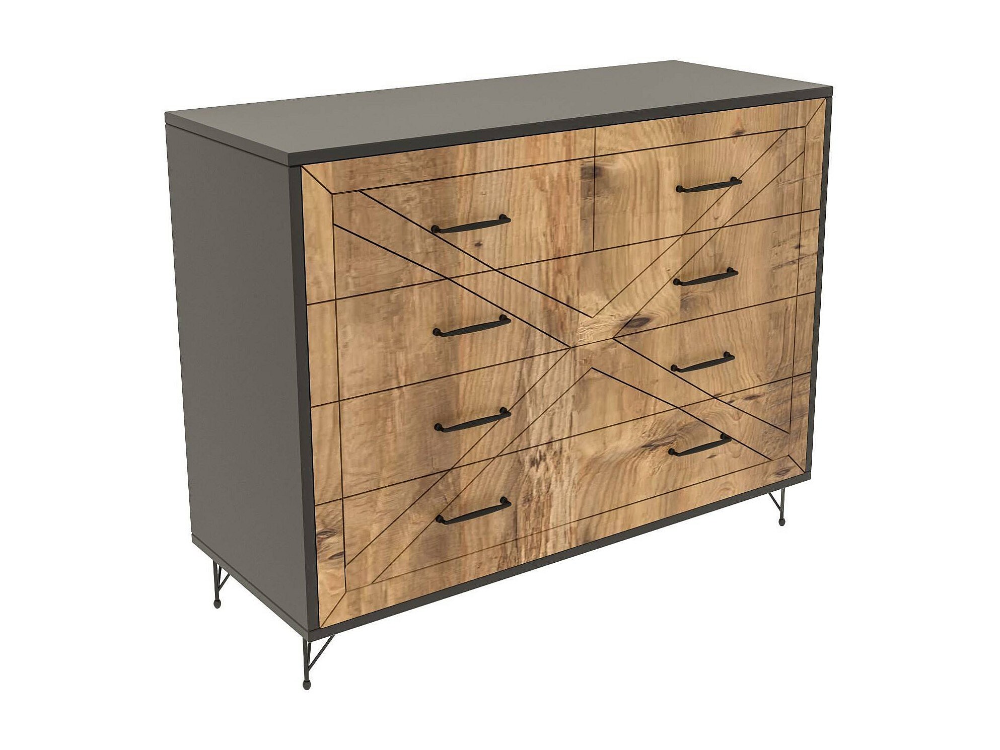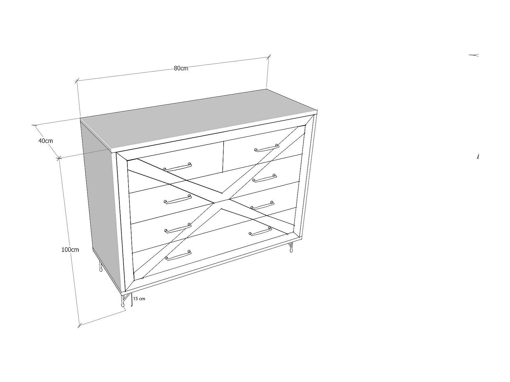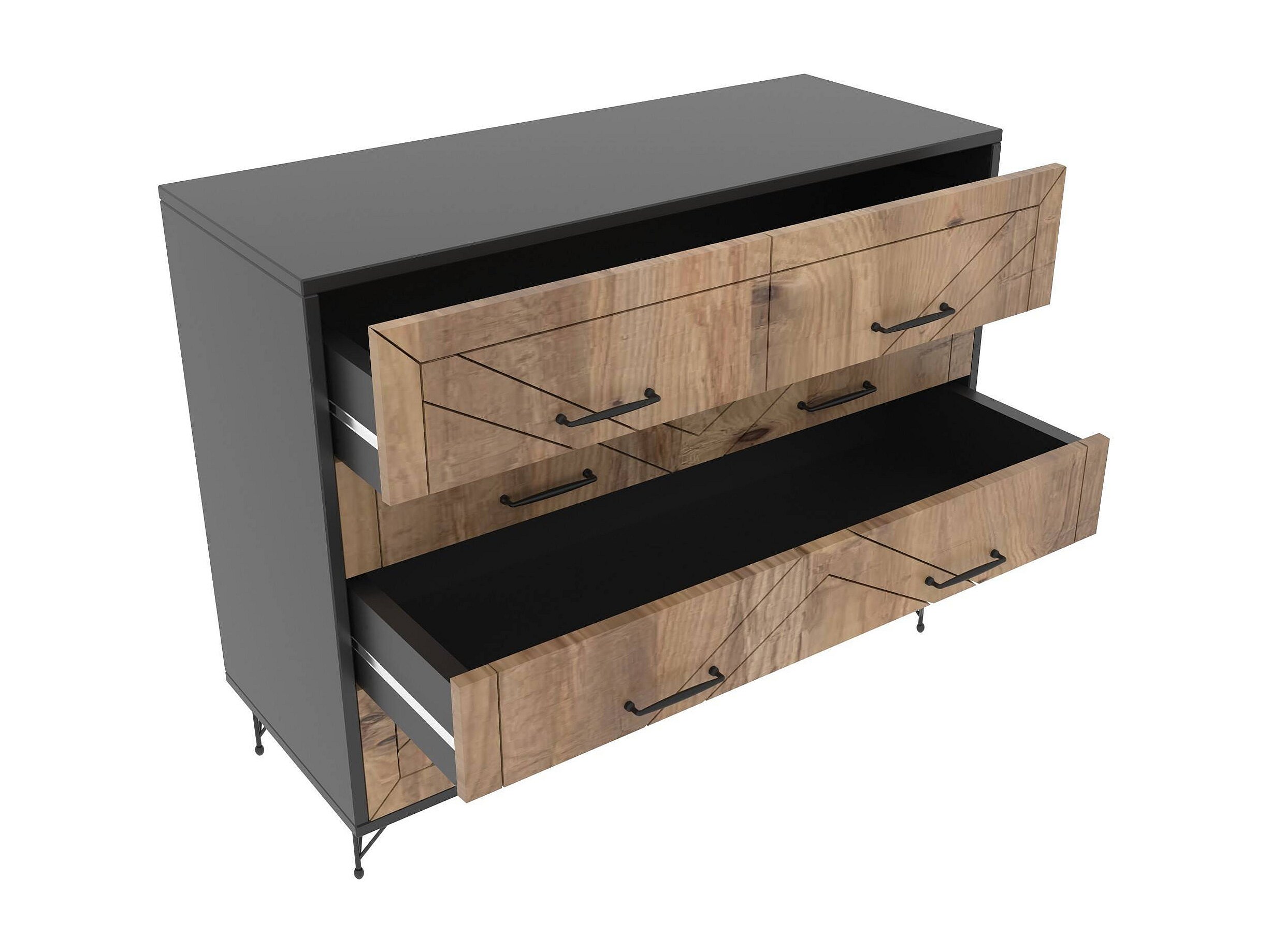 KYOTO ladekast met 4 laden – Eiken & zwart metaal-Color ribete verde crudo
