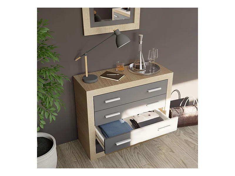 Cómoda Low Cost 3 cajones roble canadian 80x77x38 cm