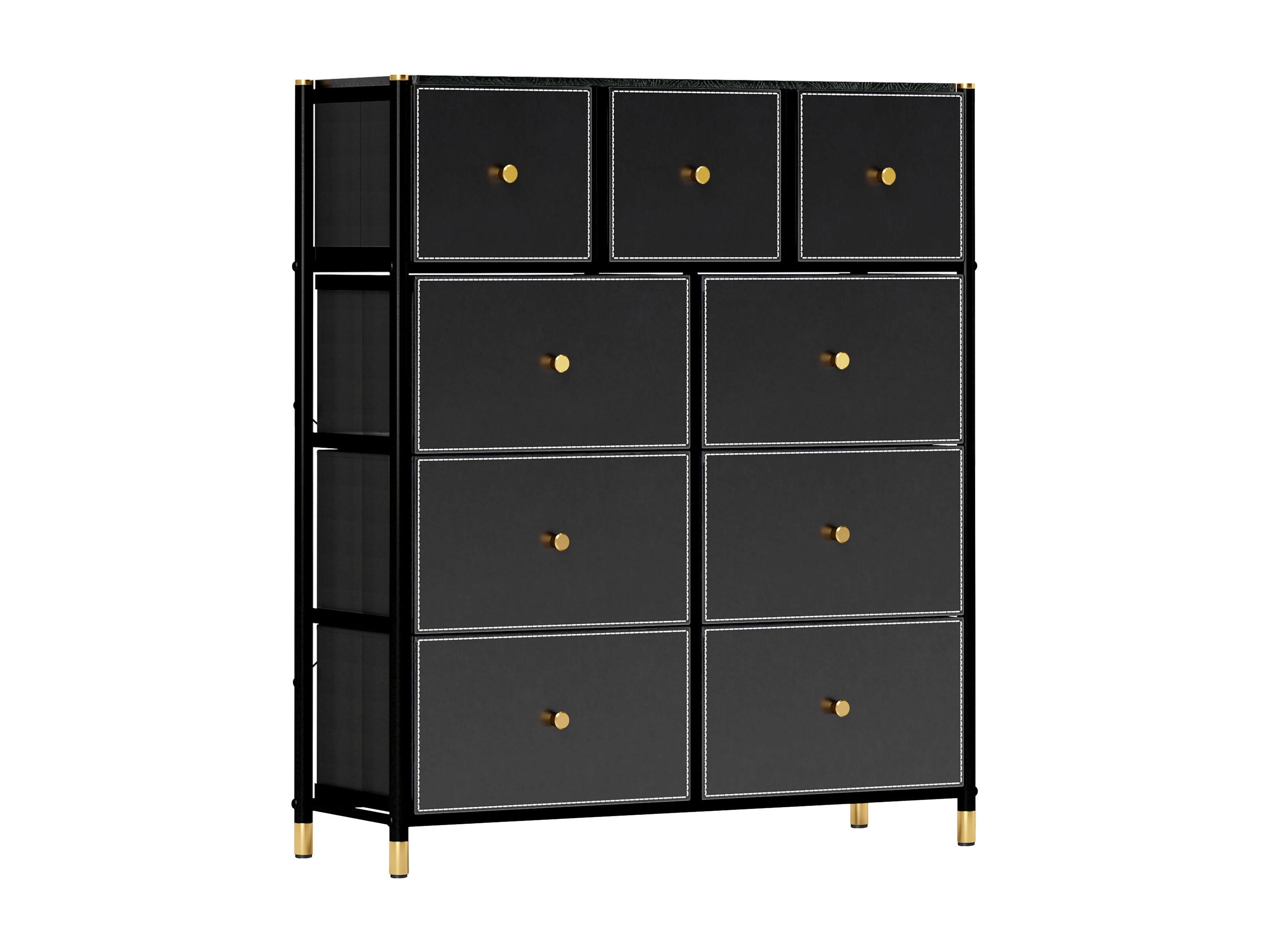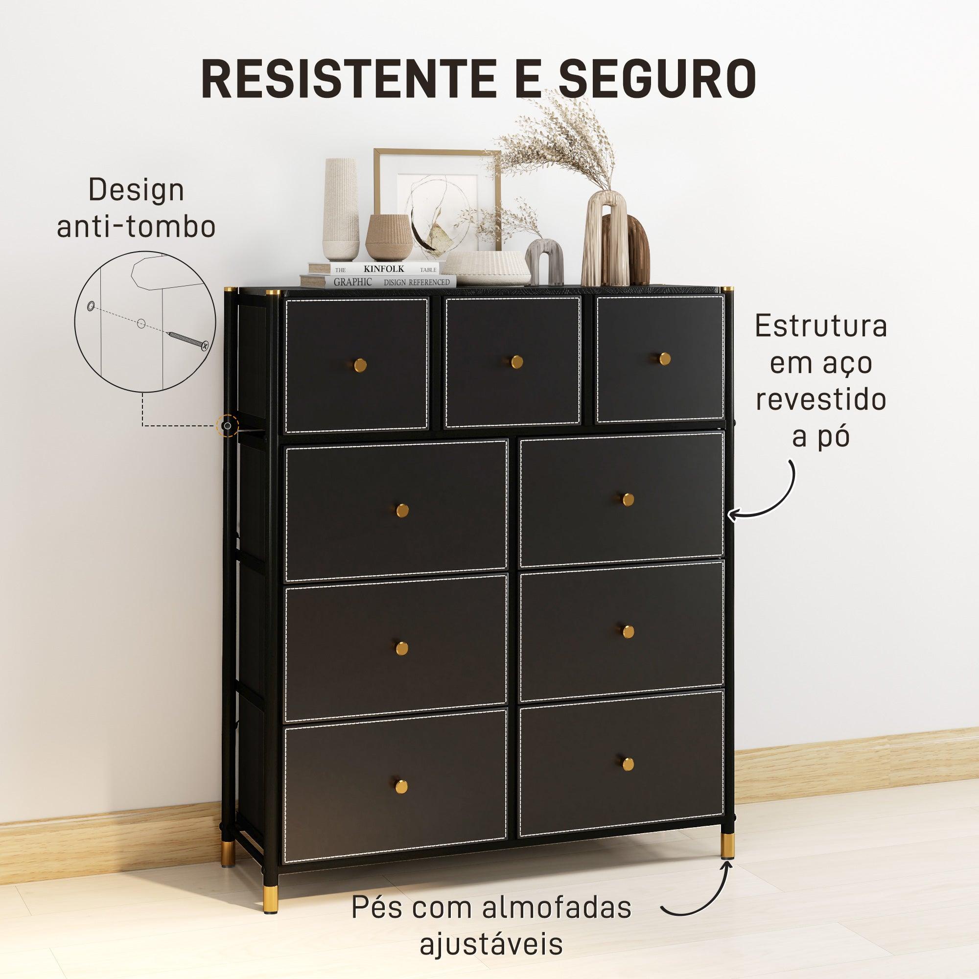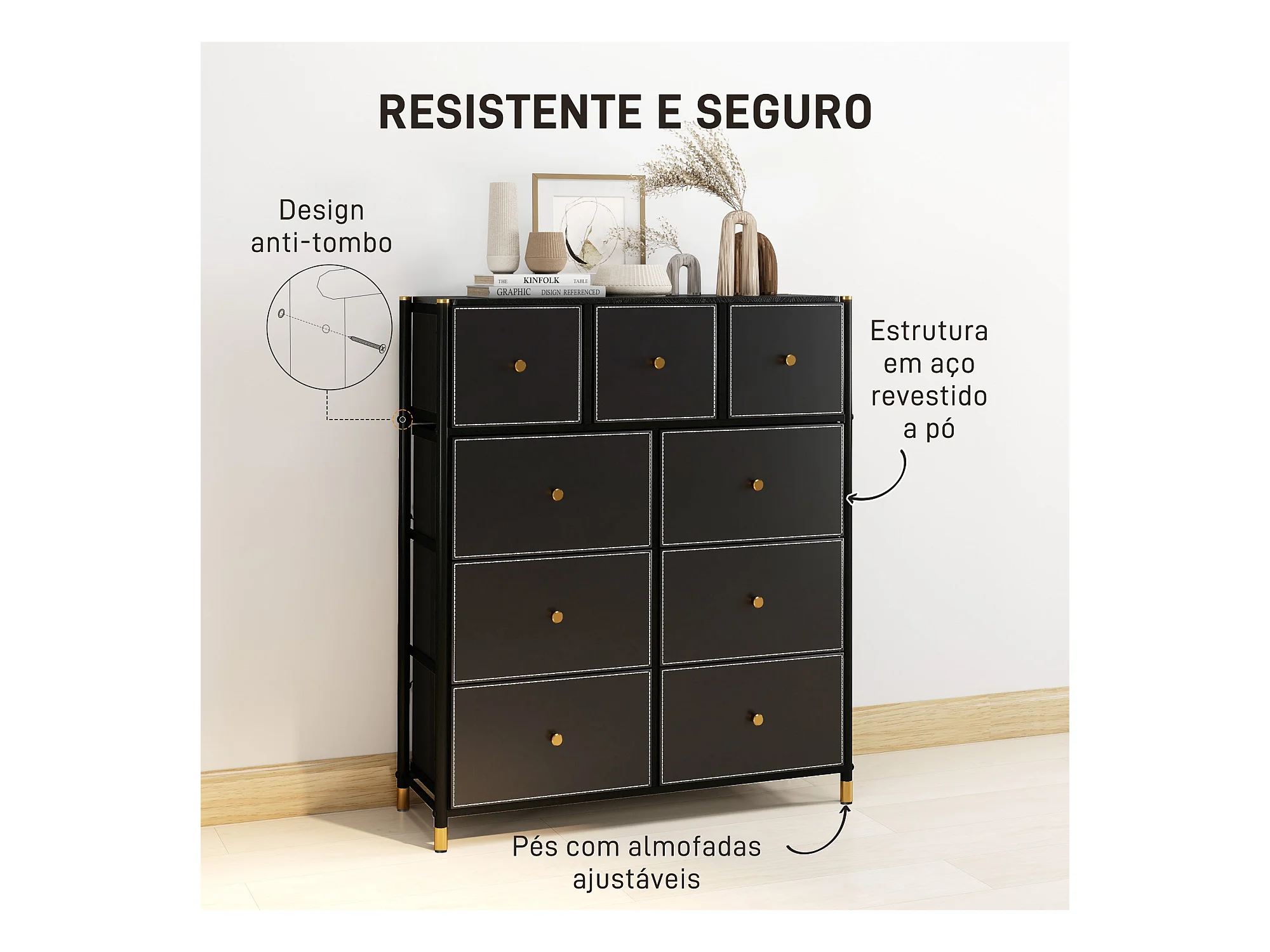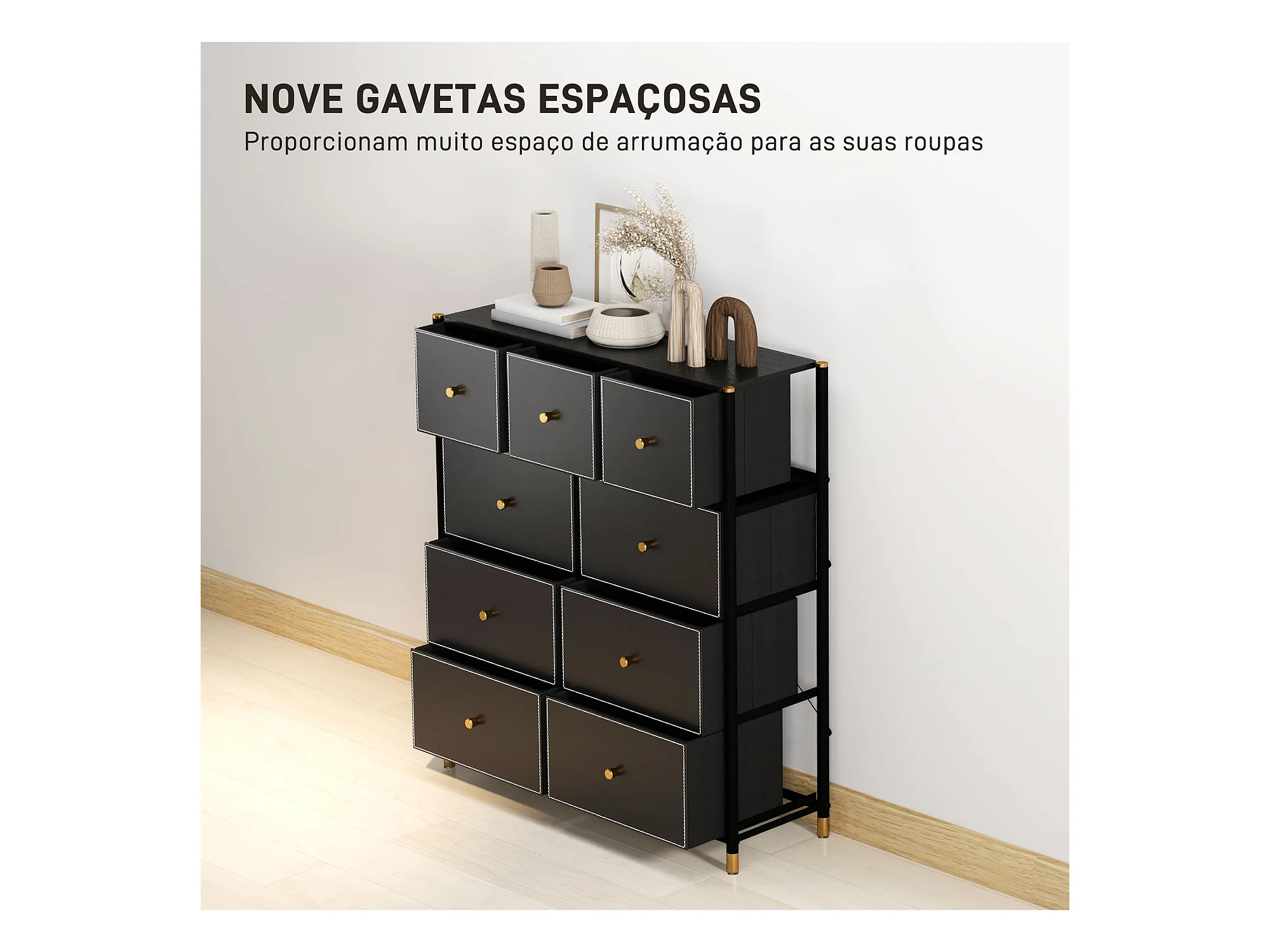 Cómoda Manchester Homcom 9 cajones negro/dorado 103,5x88x30 cm