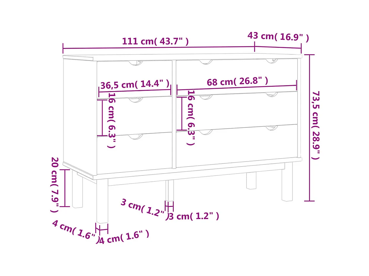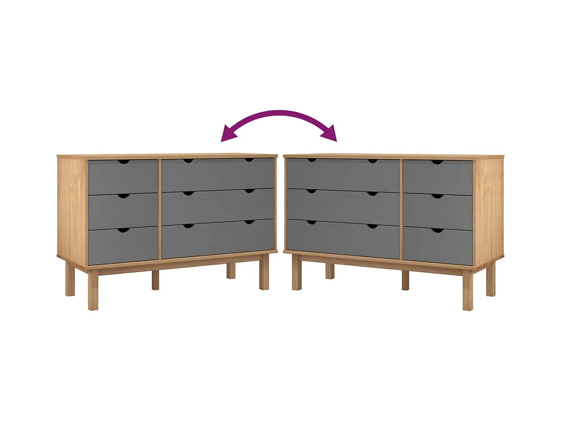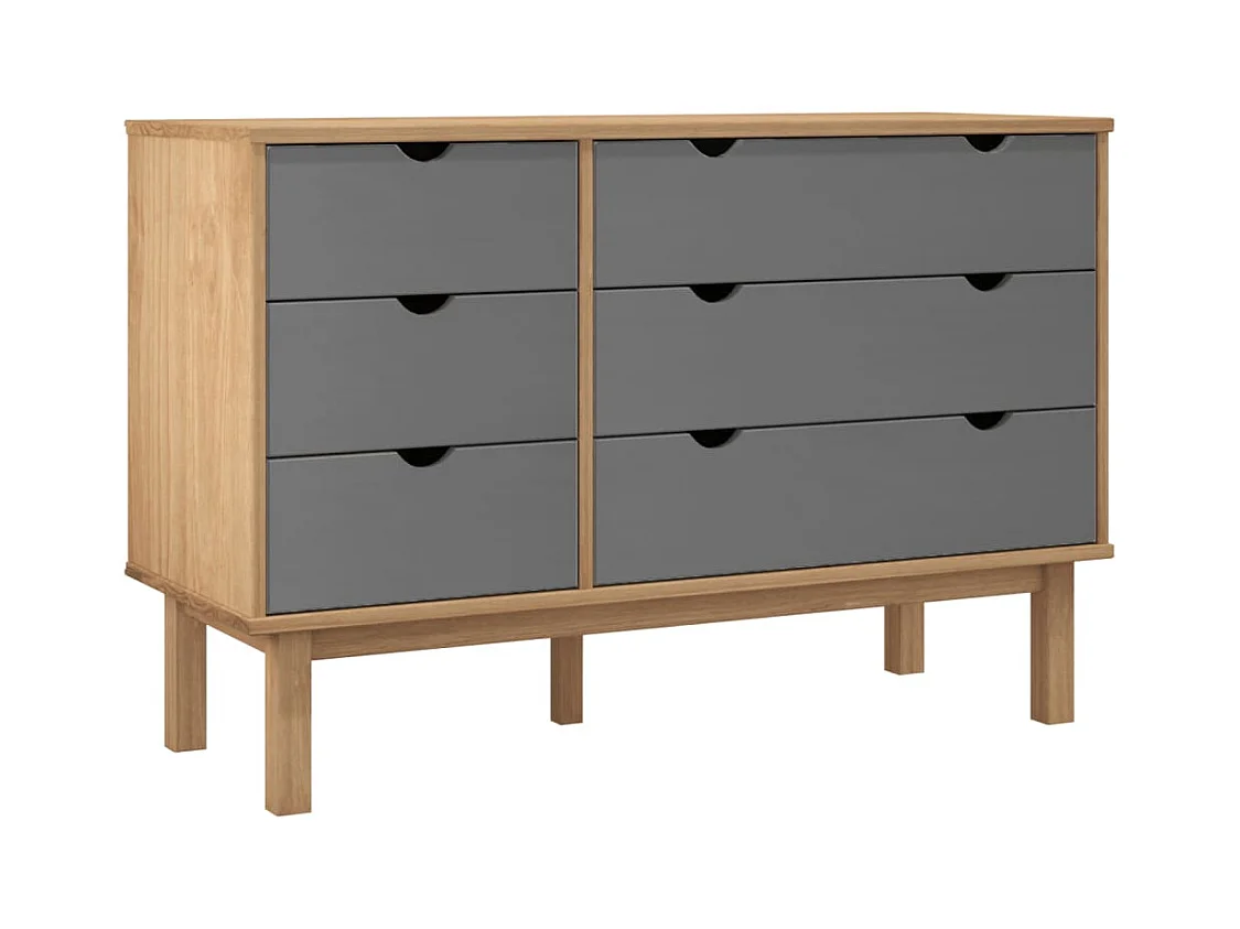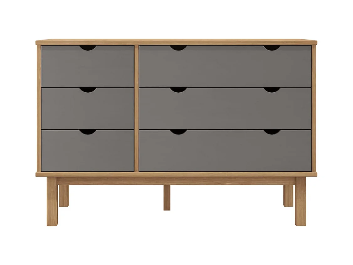 Cómoda marrón y gris 111x43x73,5 cm madera maciza de pino