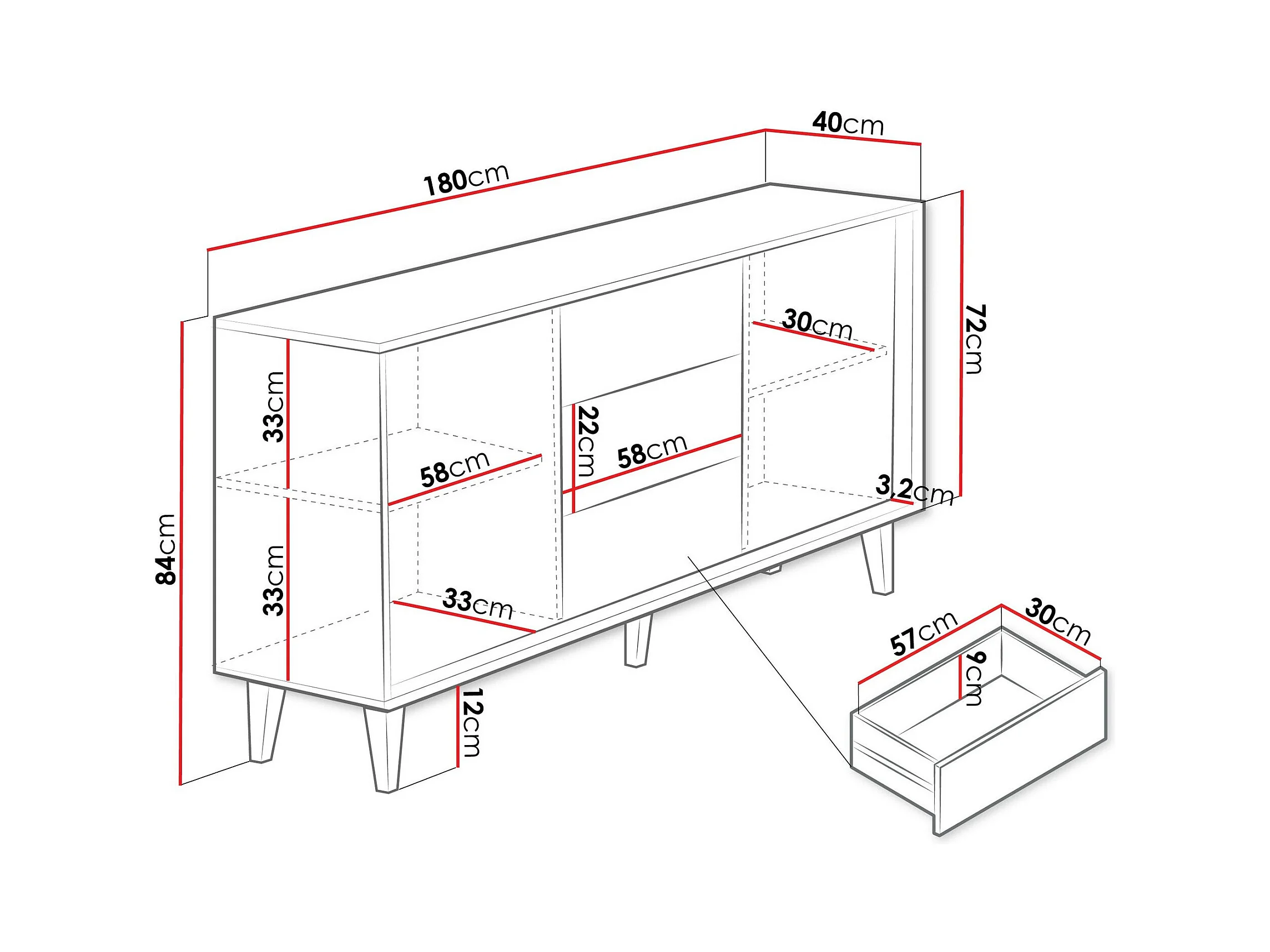 Cómoda Comfivo Romtori 101, Roble Artisan, Con cajones y puertas, 84x180x40cm