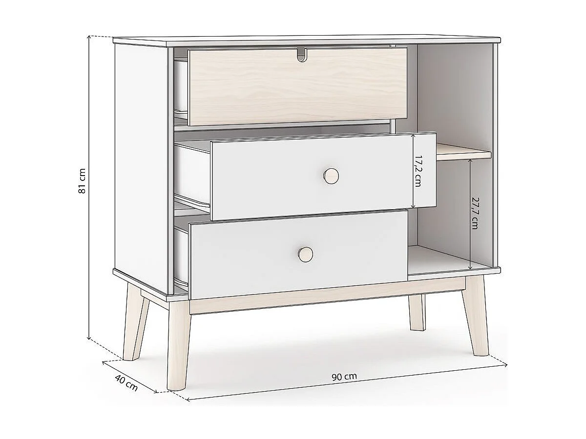 Cómoda Misty Cloud 3 cajones Blanco - Oak Soft