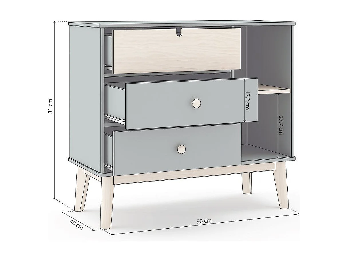 Cómoda Misty Cloud 3 cajones Verde Salvia - Oak Soft