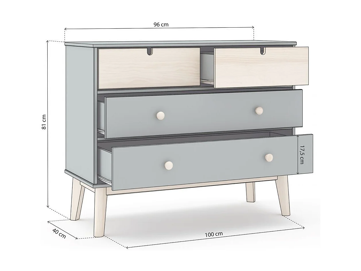 Cómoda Misty Cloud 4 cajones Verde Salvia - Oak Soft