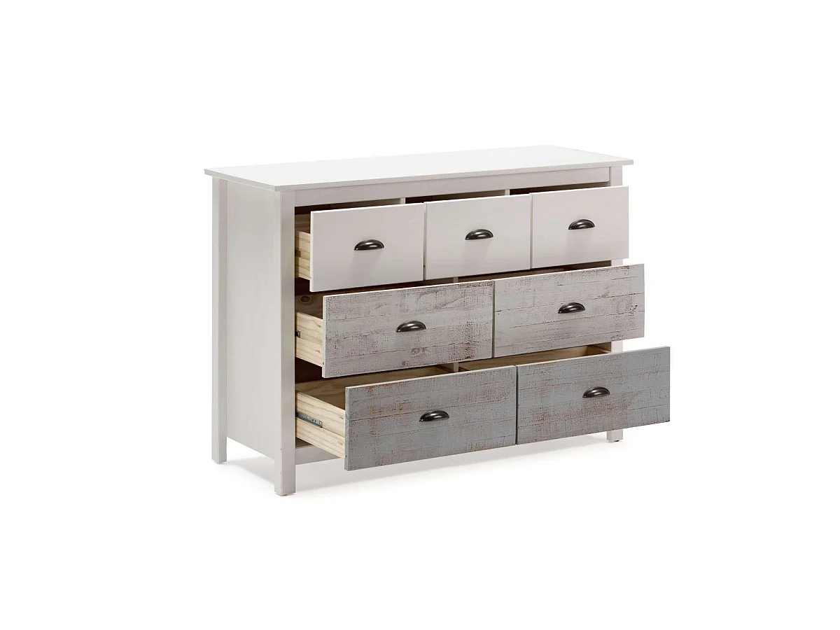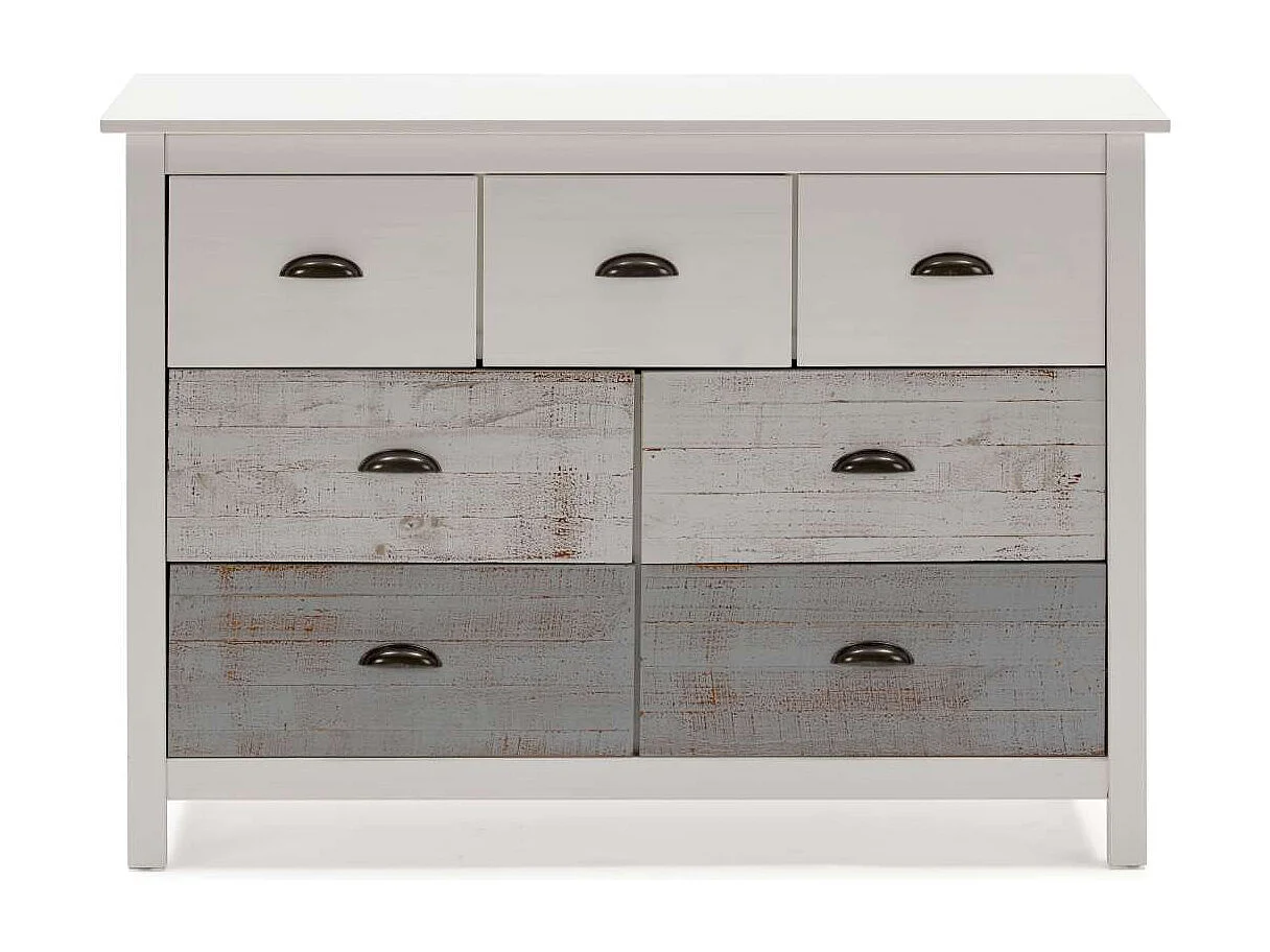 Cómoda modelo Amor 7 cajones acabado multicolor, 110cm(Ancho) 40cm(Fondo) 80cm(Alto