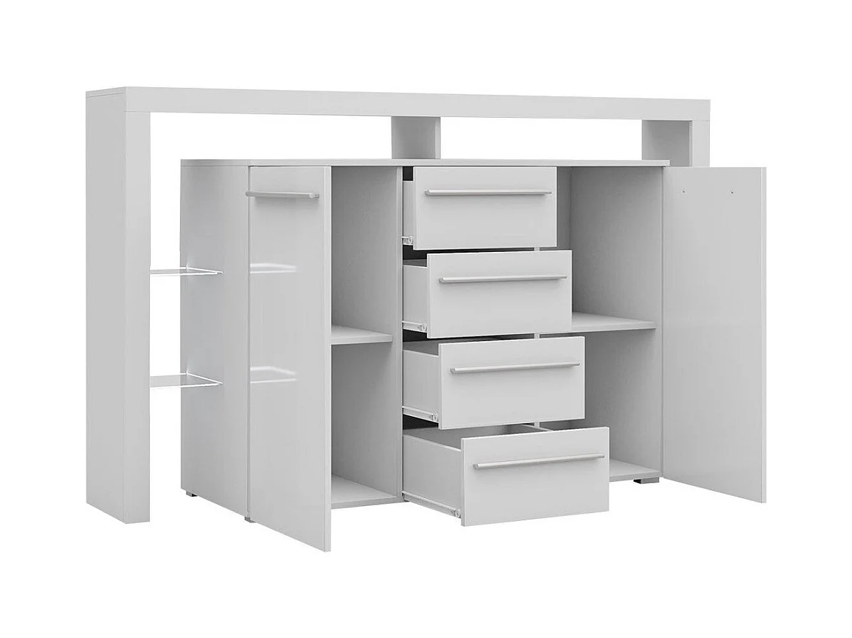 Cómoda Nashville 106, Blanco|Blanco brillante, Con cajones y puertas, 94x170x45cm