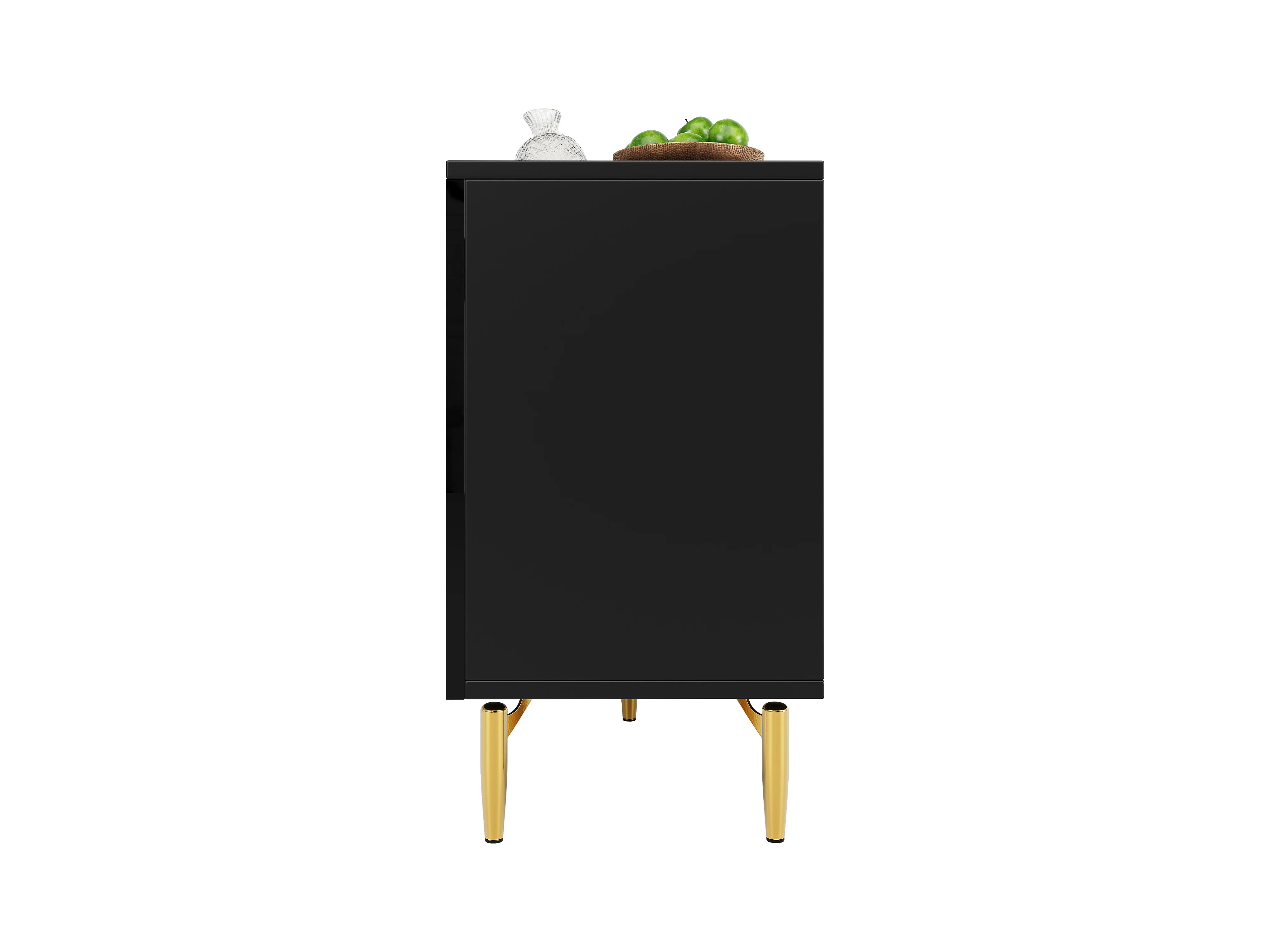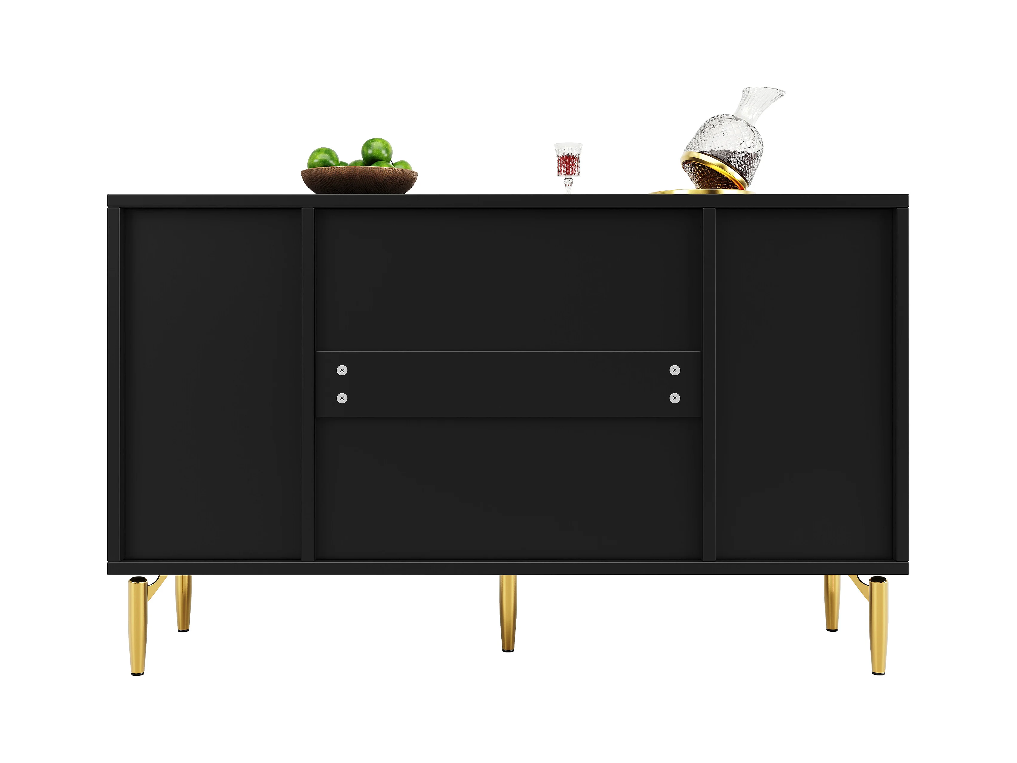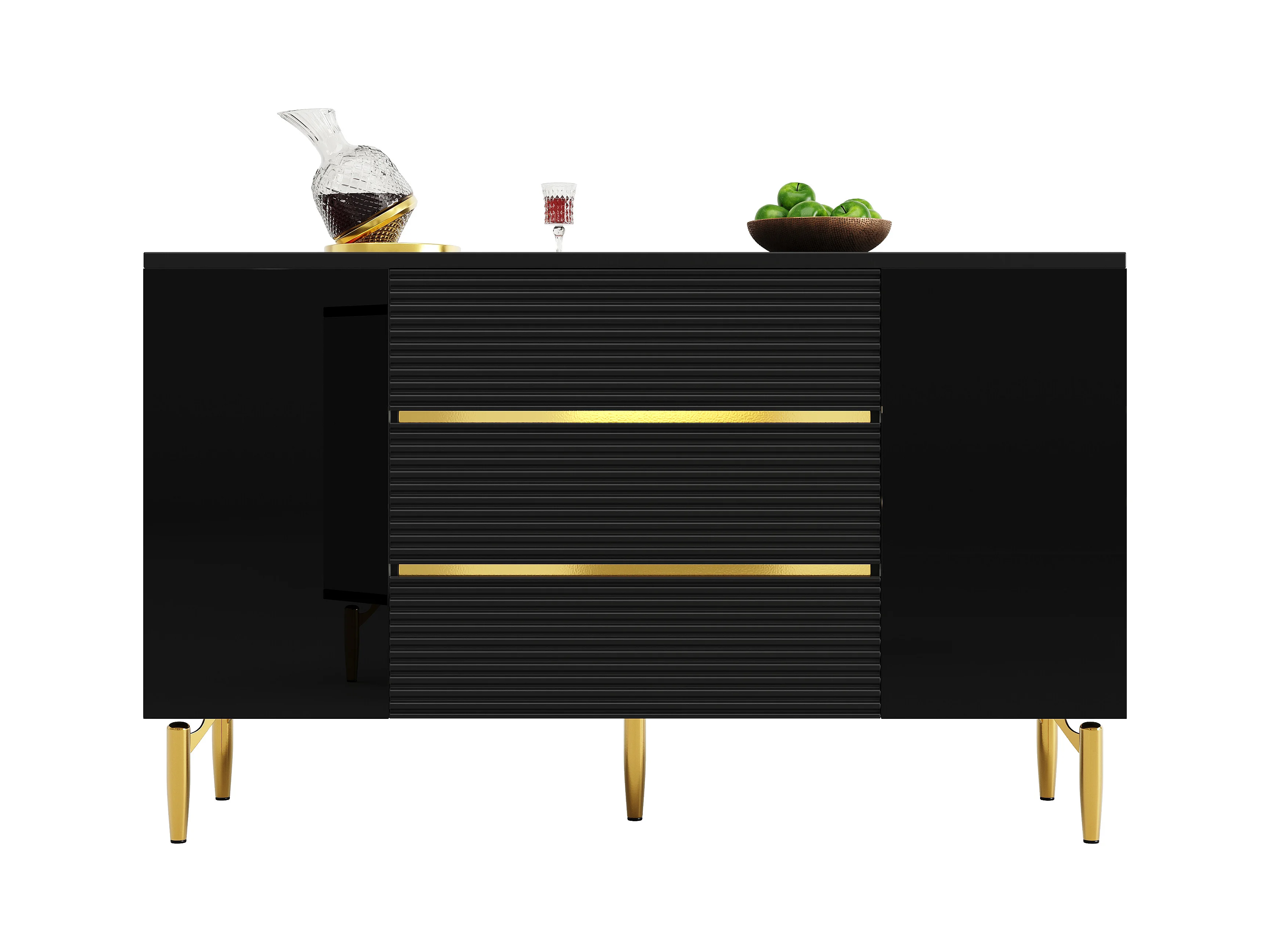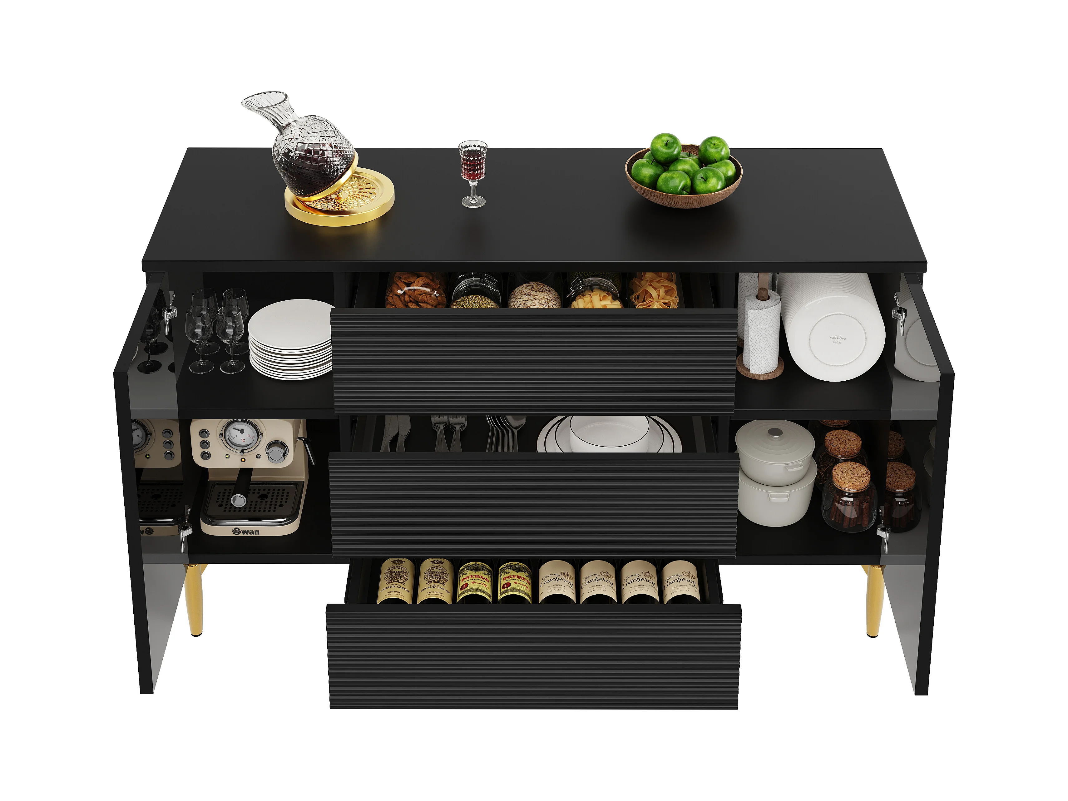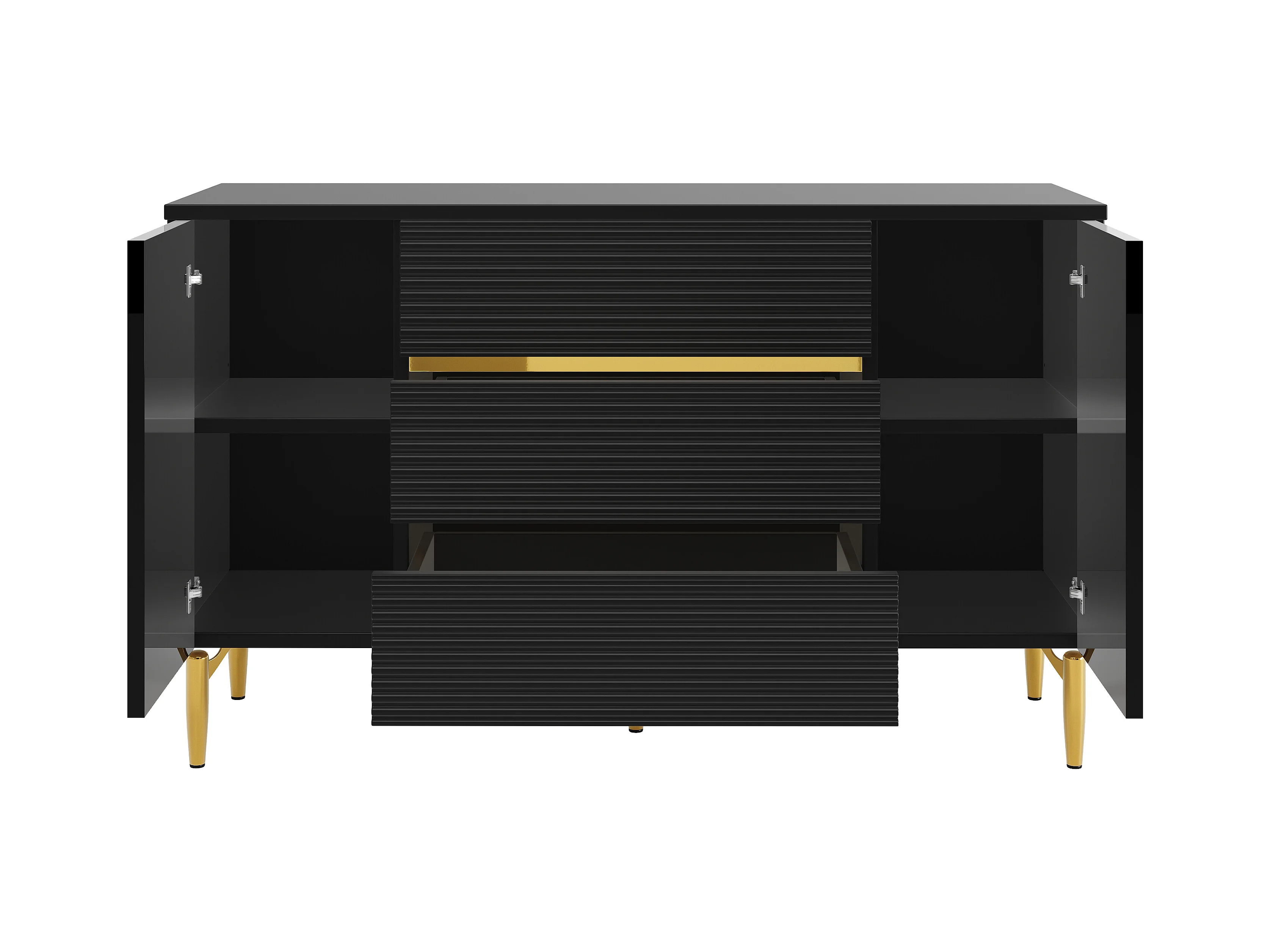Cómoda negra de elegante diseño, MDF, con 3 niveles de cajones y decoración dorada (120x40x73 cm)