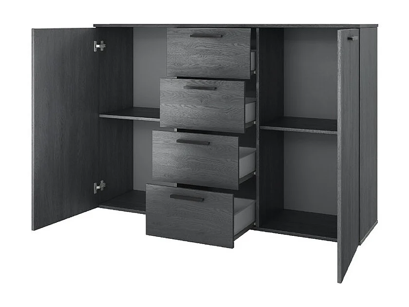 Cómoda negra para dormitorio con 4 cajones y 2 puertas 132x38x93 Lyssa