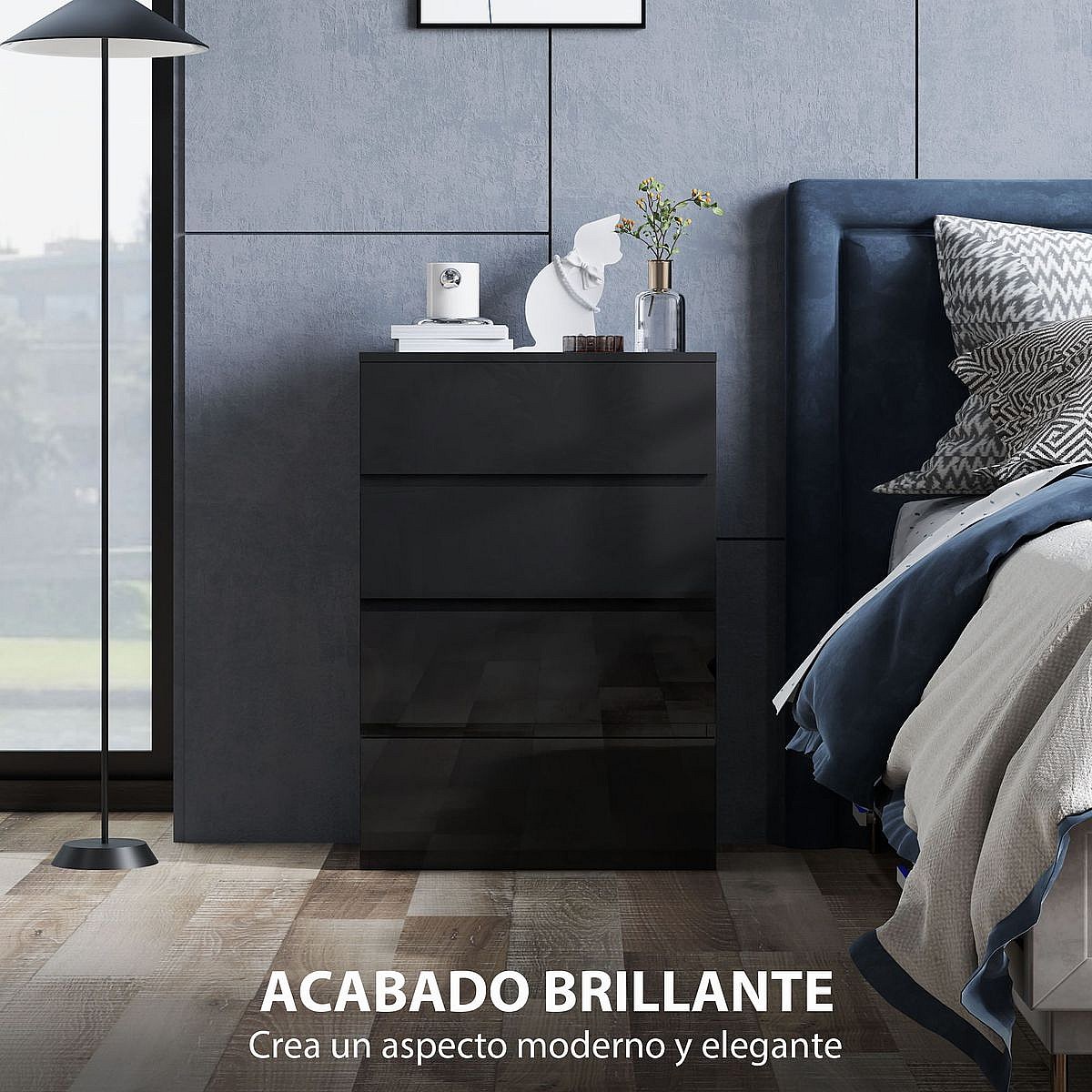 Cómoda Noche Homcom 4 cajones negro 80x55x34 cm