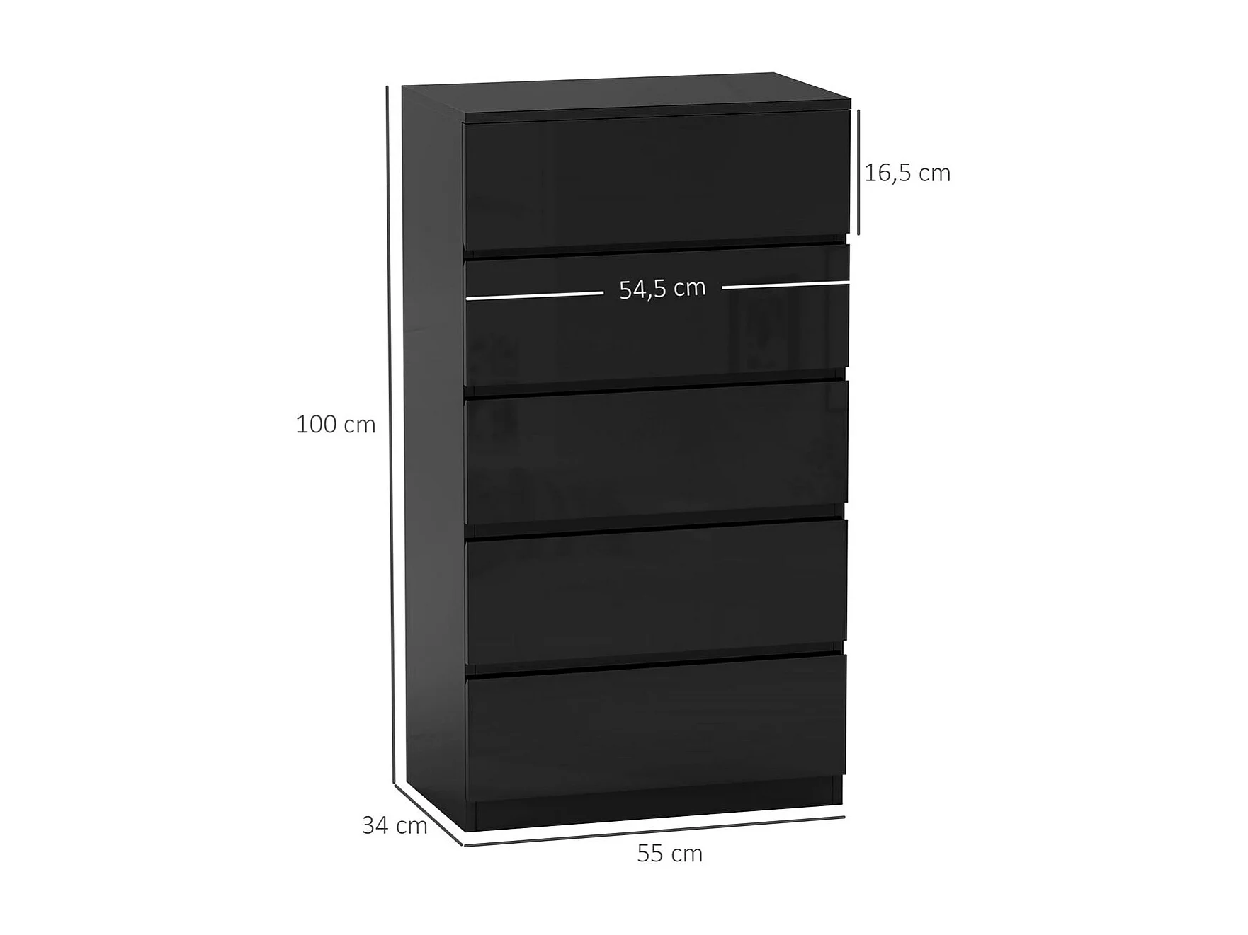 Cómoda Noche Homcom 5 cajones negro 100x55x34 cm