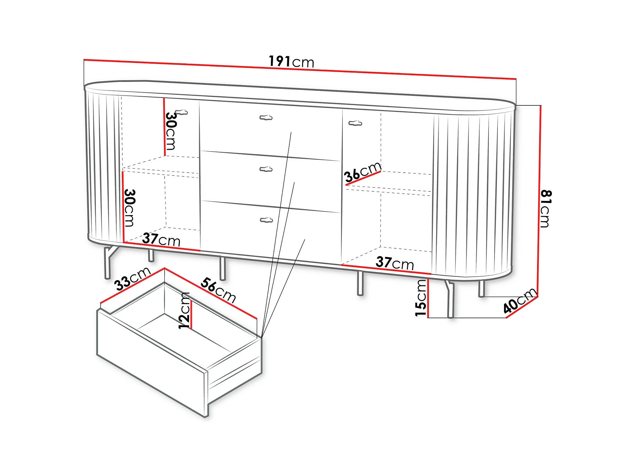 Cómoda Novmono 103, Negro, Con cajones y puertas, 81x191x40cm