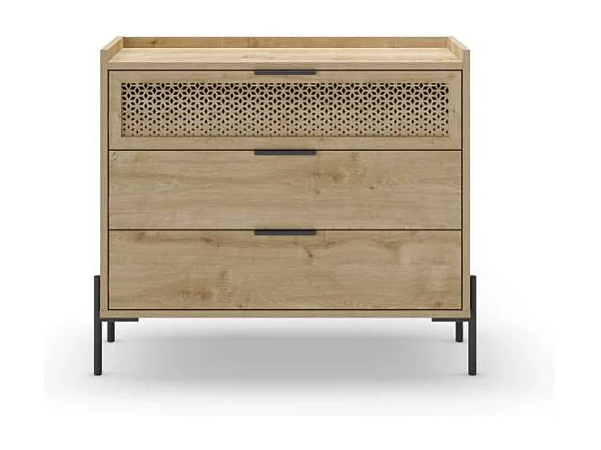 Cómoda para dormitorio modelo India 3 cajones acabado roble/negro, 90cm(ancho) 80cm(alto)