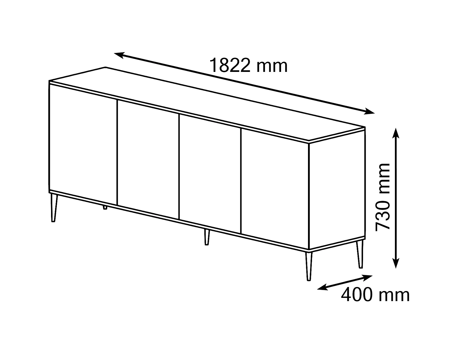 Aparadores para salón, 200x35x87cm, 4 Puertas, Diseño industrial, Roble y negro