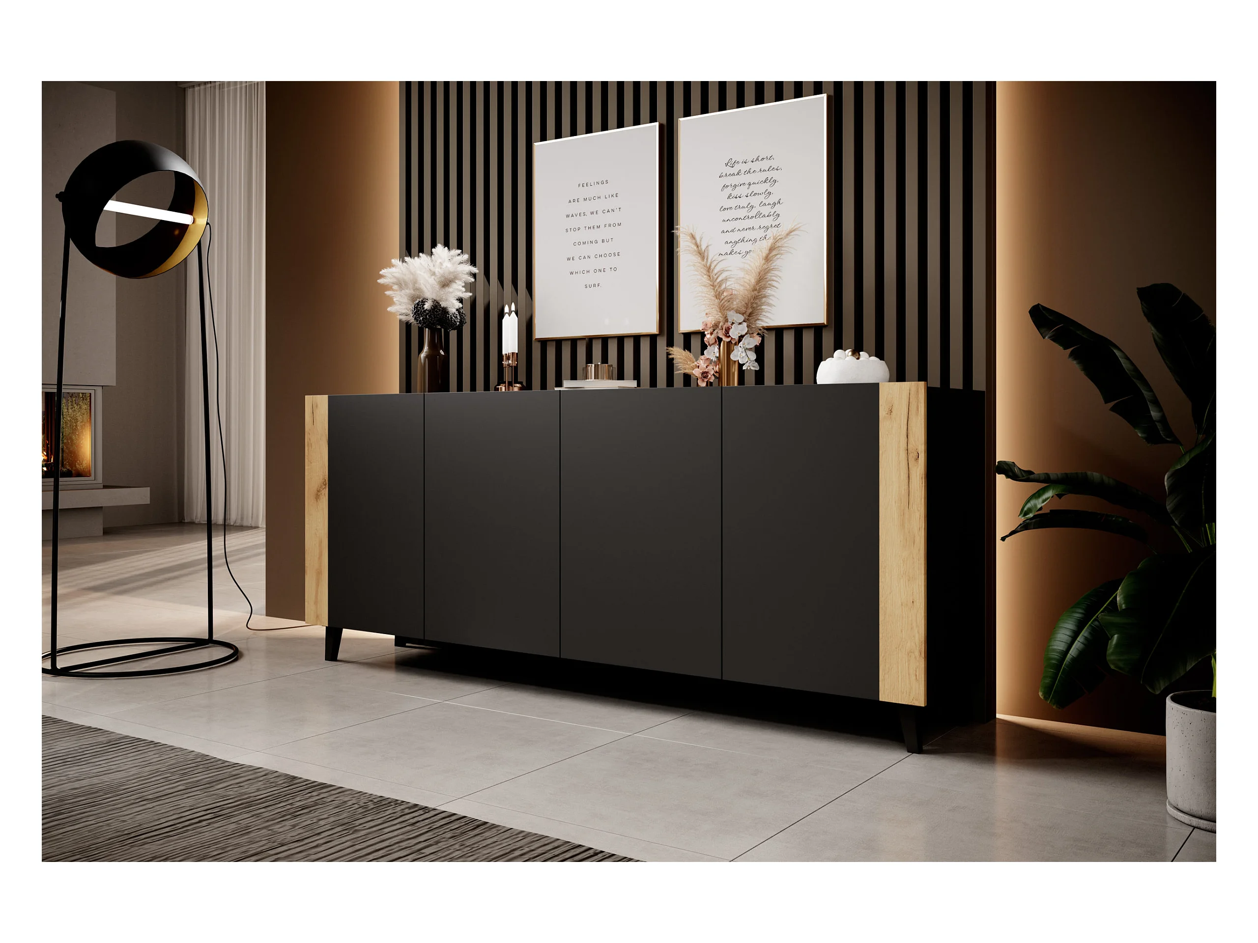 Cómoda PHARE 200 cm - 4 puertas - negro mate / roble craft