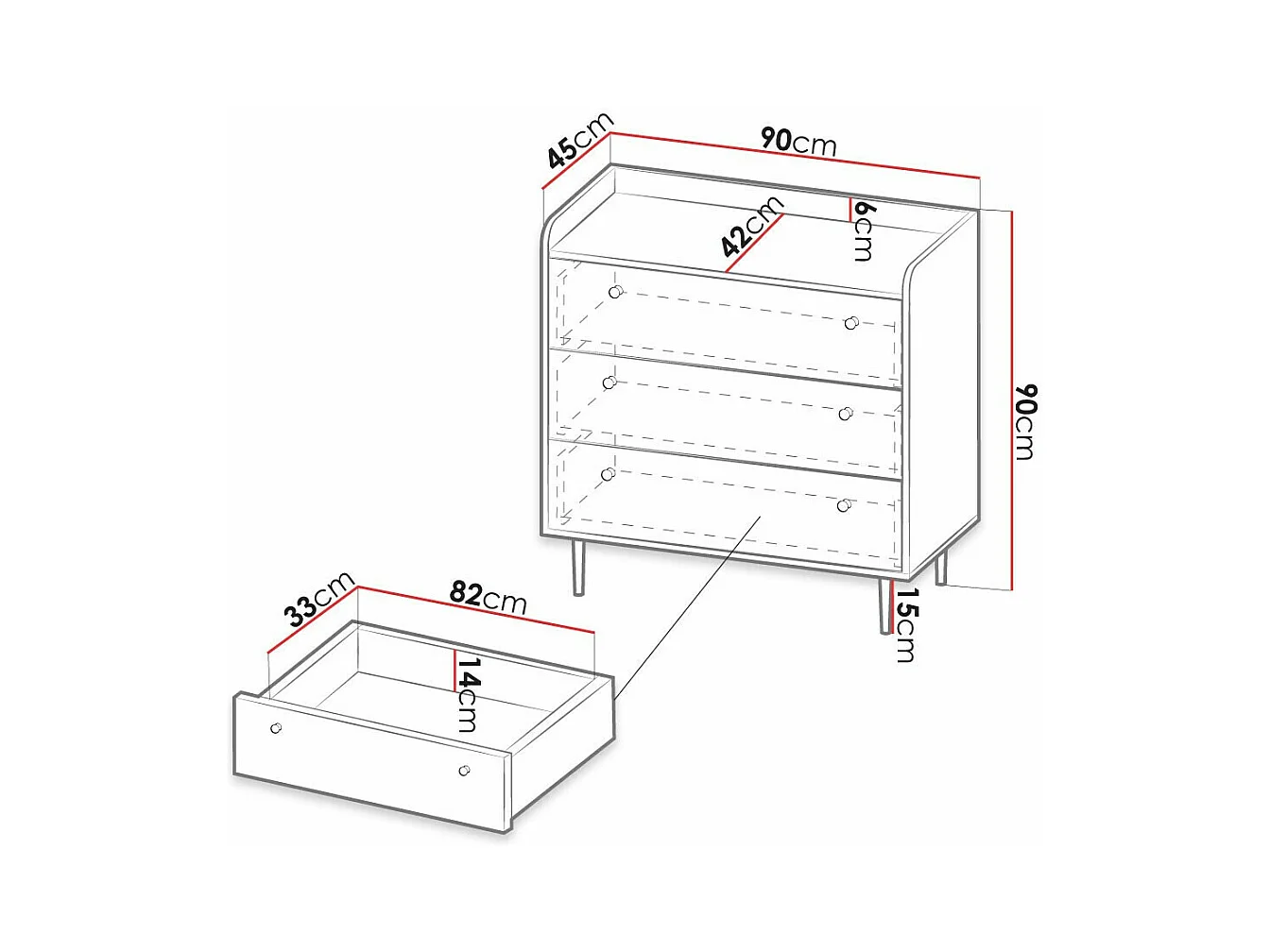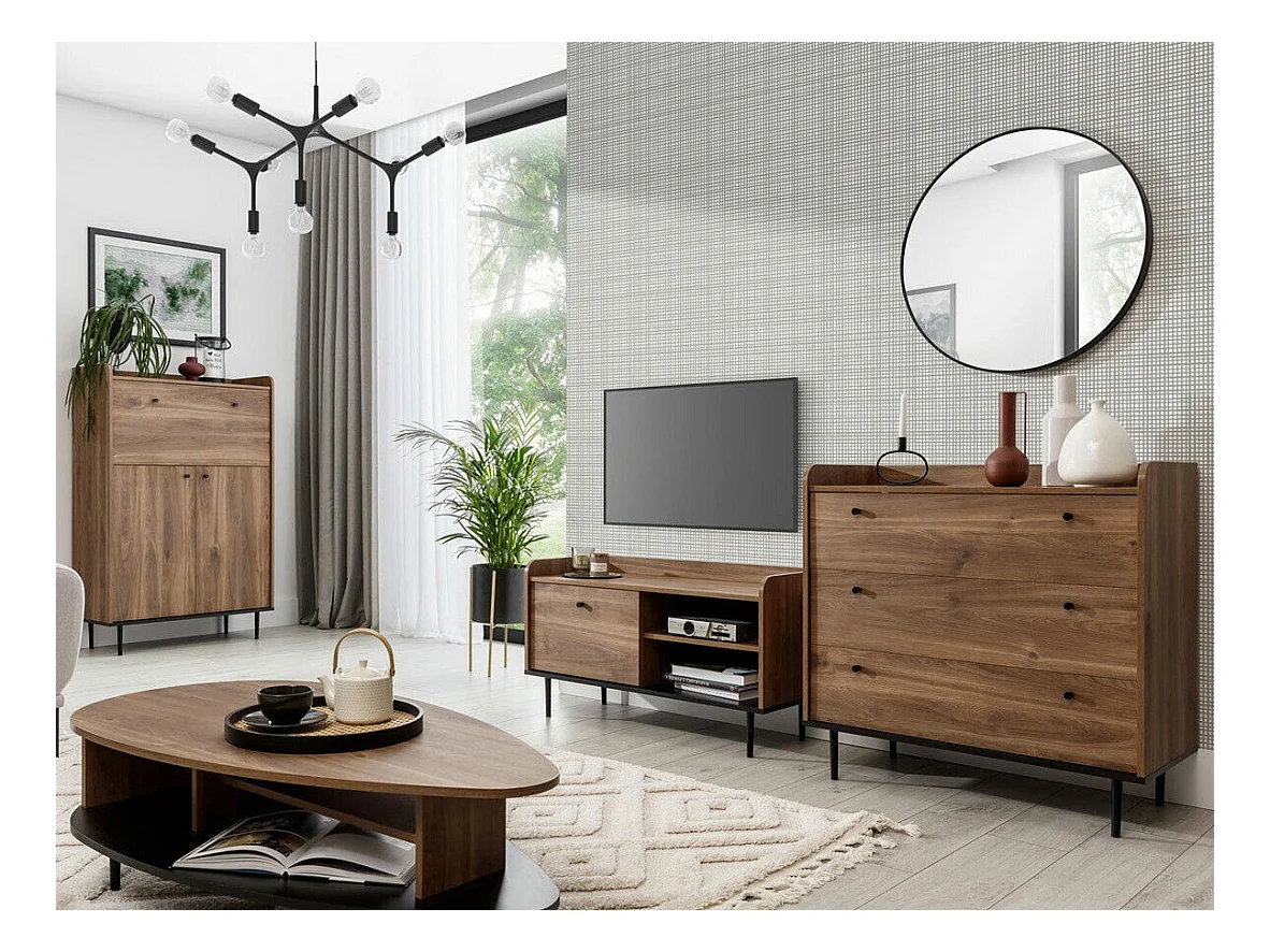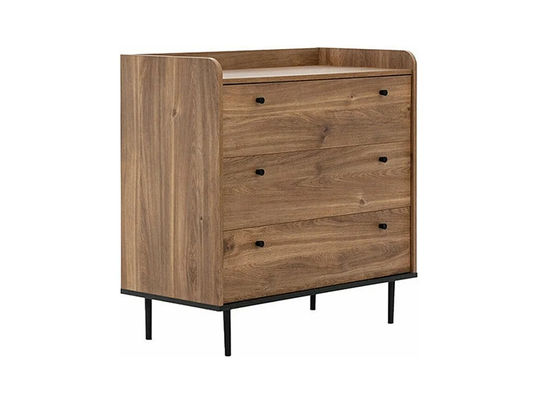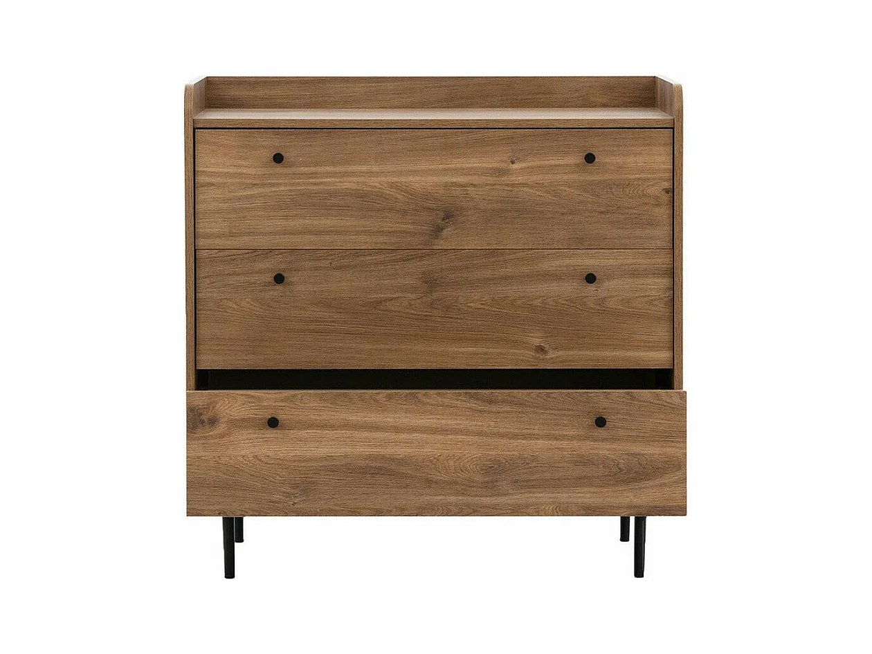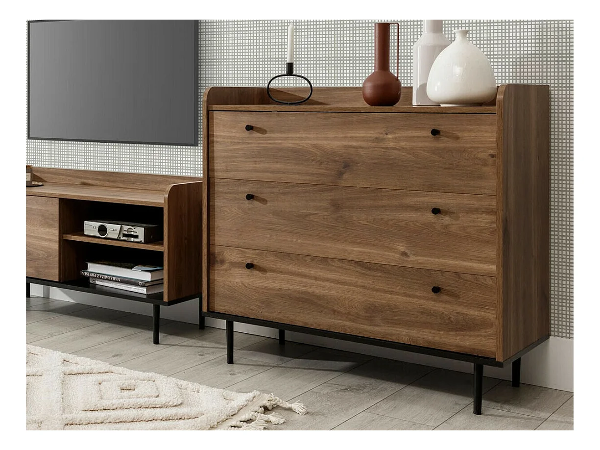Cómoda Ferenou 101, Negro|Roble oscuro, Con cajones, Número de cajones: 3, 90x90x45cm