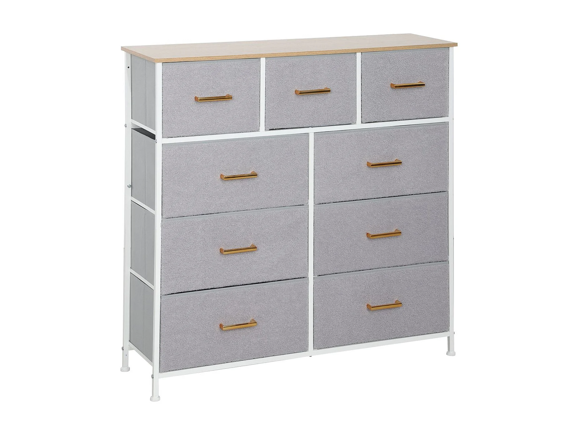 Cómoda Roble Homcom 9 cajones de tela gris 99x100x30 cm