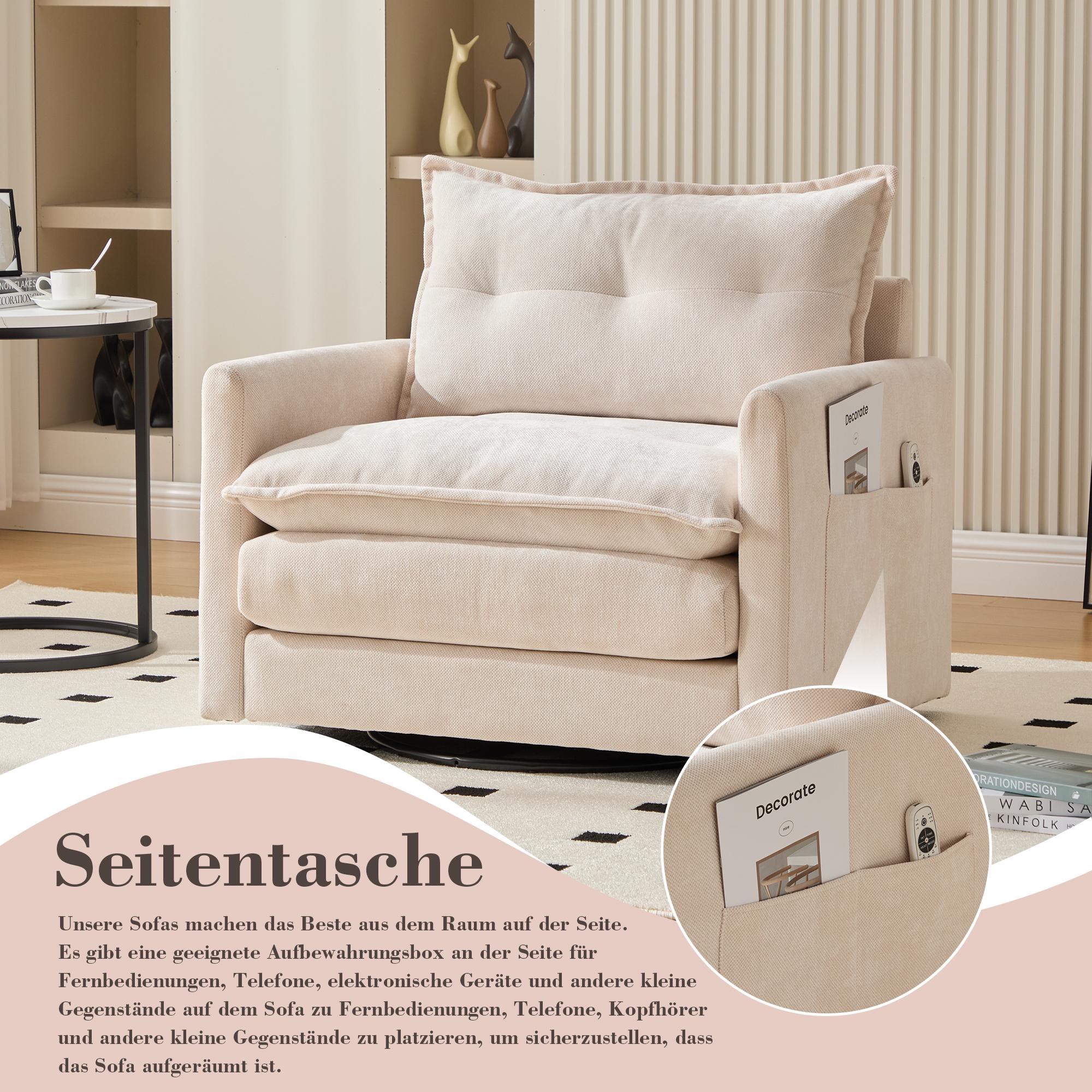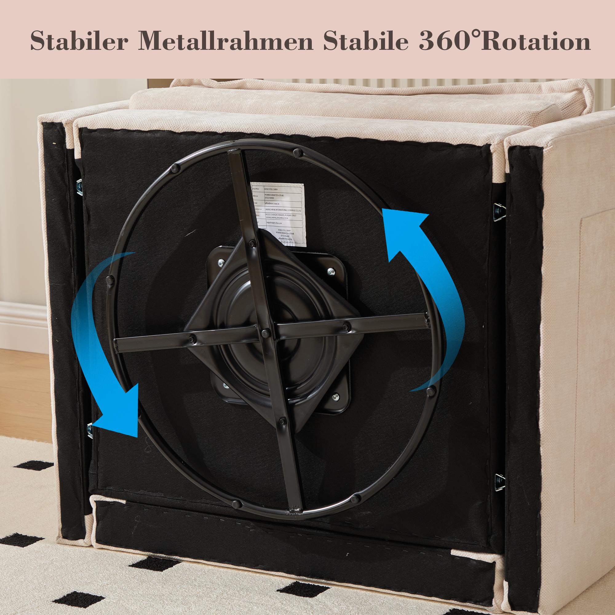 Sillón giratorio tapizado en terciopelo para sala de estar, dormitorio, oficina, beige, 360°
