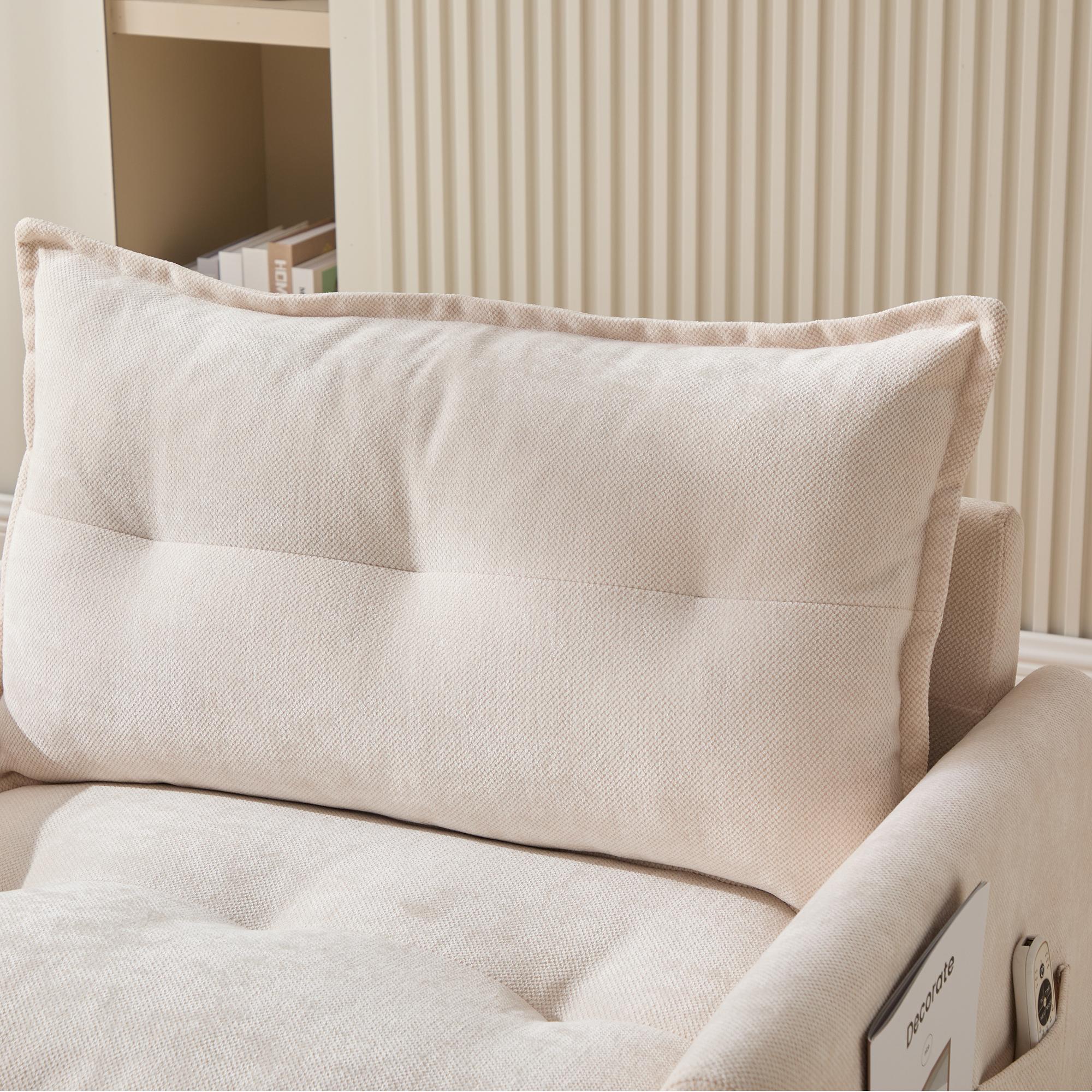 Sillón Sherpa con reposabrazos, asiento acolchado ancho para salón, dormitorio, color crema
