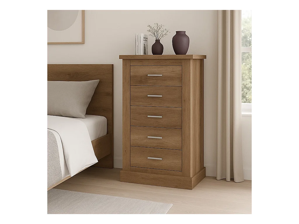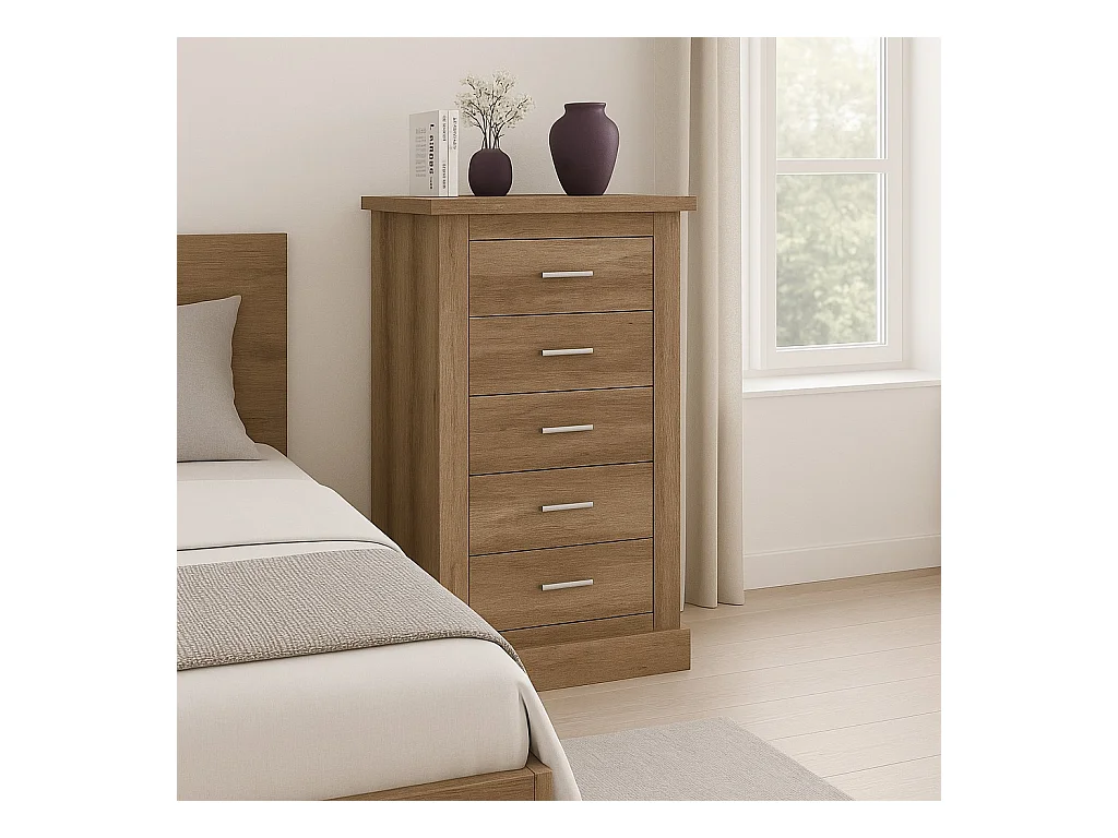 Cómoda de Dormitorio Moderna 70x109,5x40 cm – 5 Cajones con Guías Suaves – Color Roble Artesano