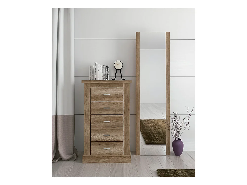 Cómoda, Sinfonier 5 Cajones, Acabado en Color Cañón, Medidas: 66 cm (Ancho) x 107 cm (Alto) x 39,6 cm de (Fondo)