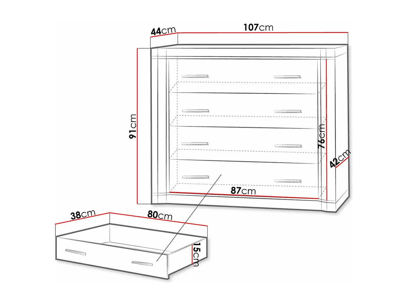 Cómoda 4 cajones Duck Gris antracita y Madera