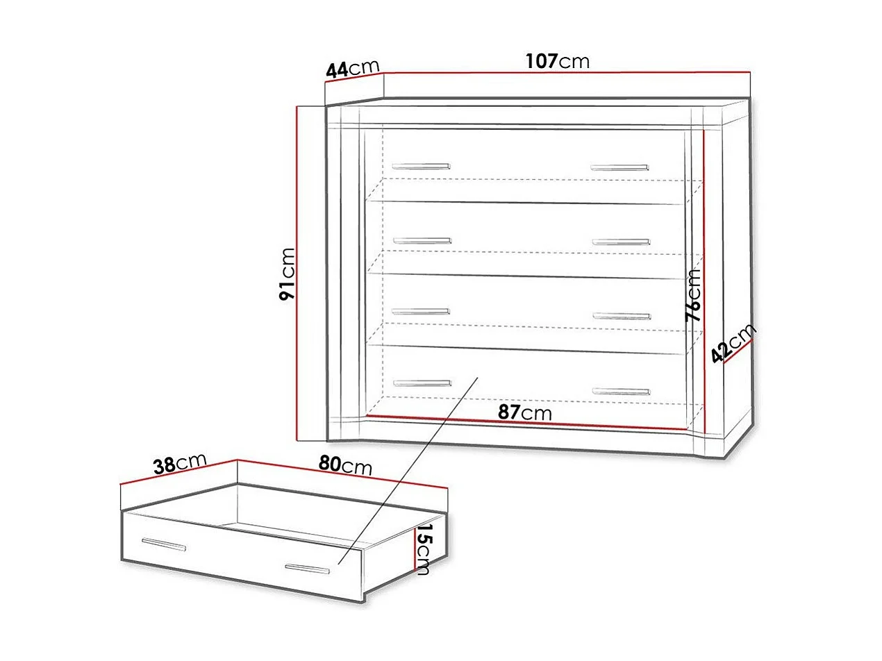 Cómoda Lorelie 101, Trufa roble, Con cajones, Número de cajones: 4, 91x107x44cm