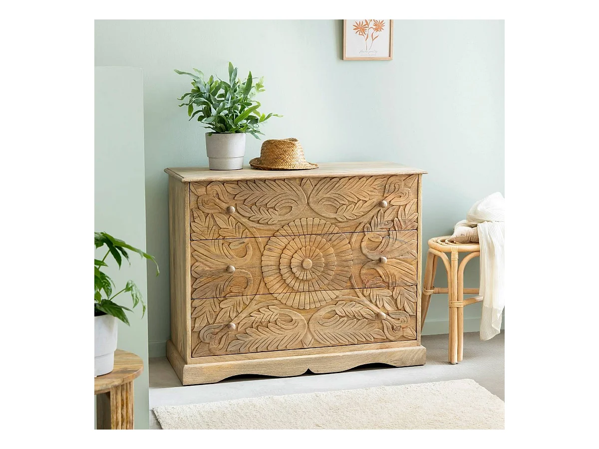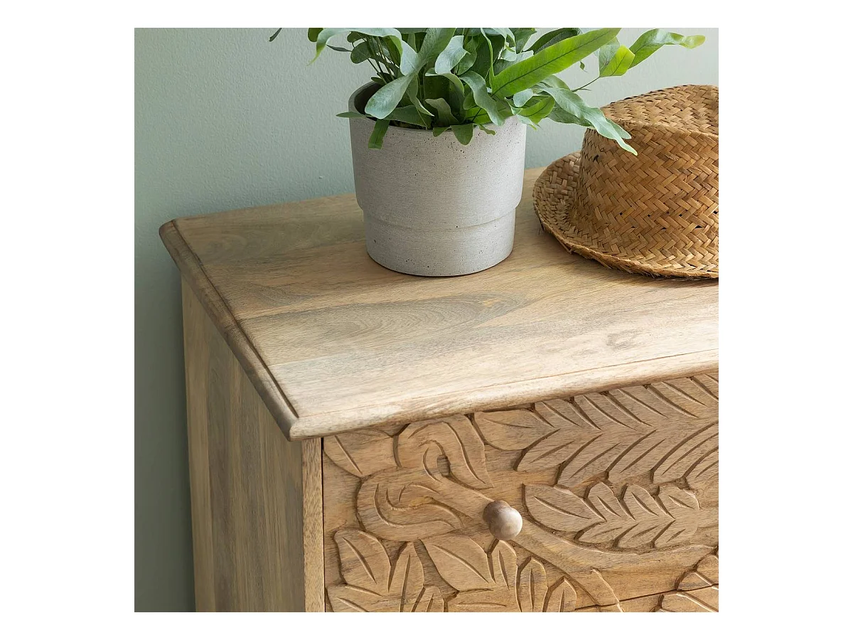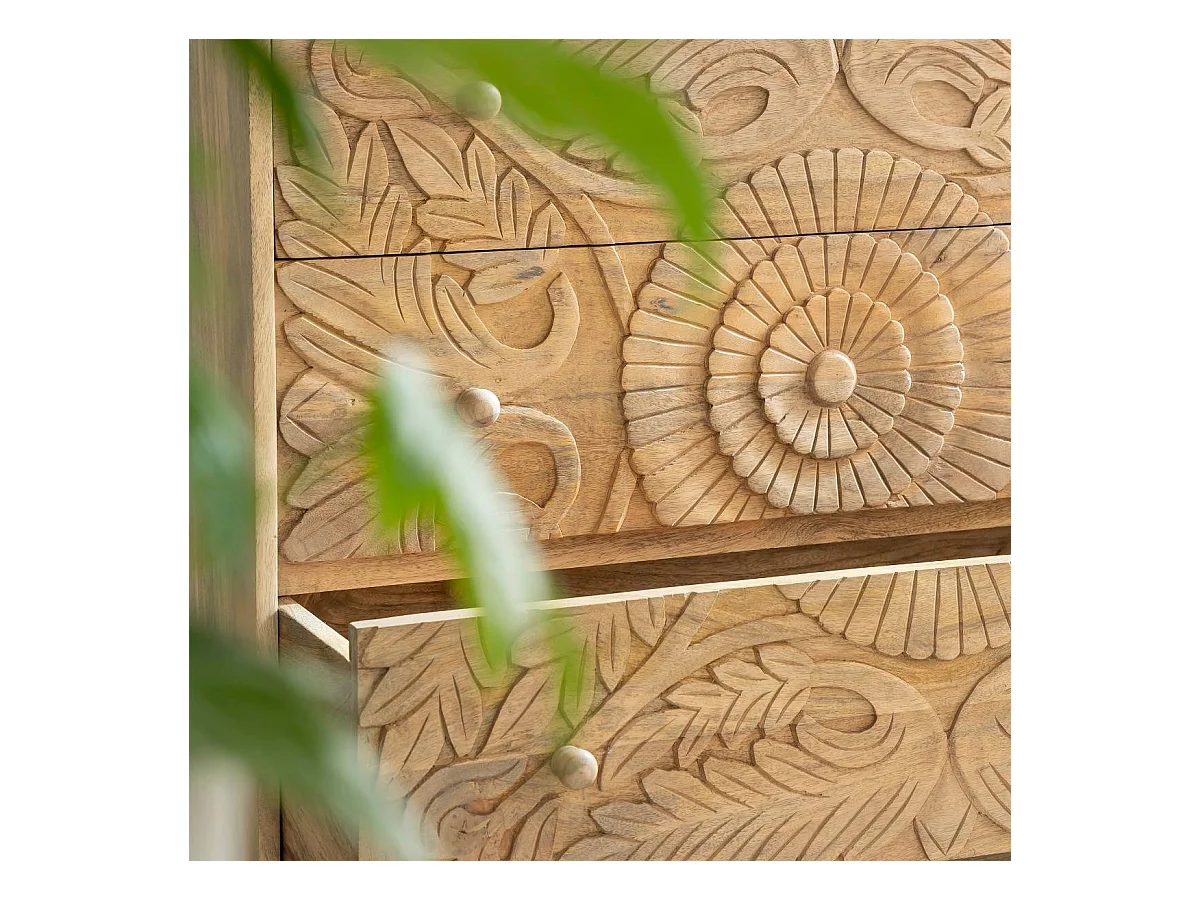 Cómoda 4 cajones en madera de mango y rejilla Soren