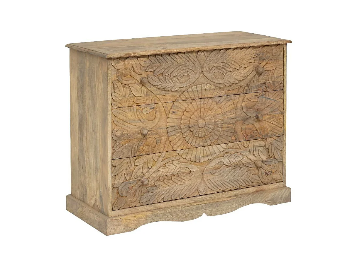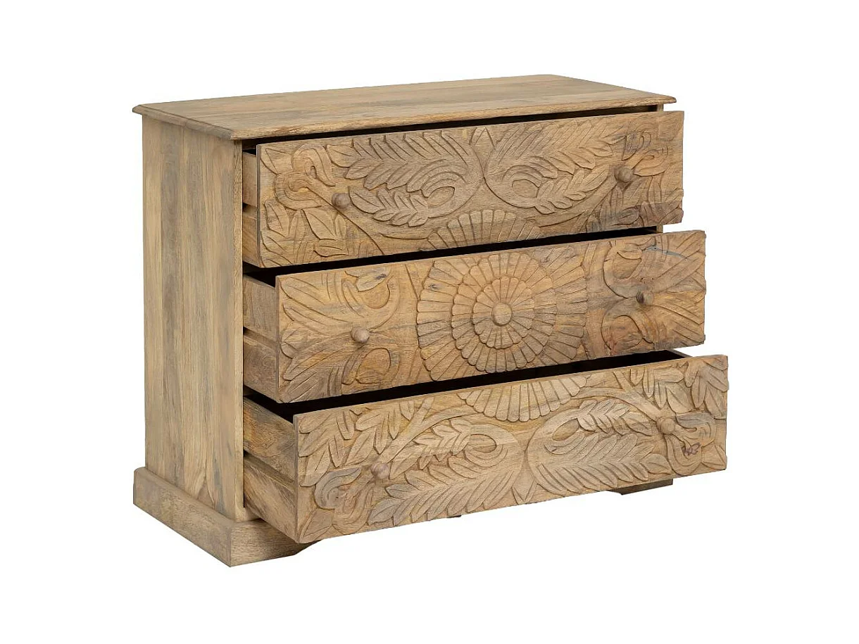 Cómoda de madera de acacia y metal, 3 cajones - Alabama