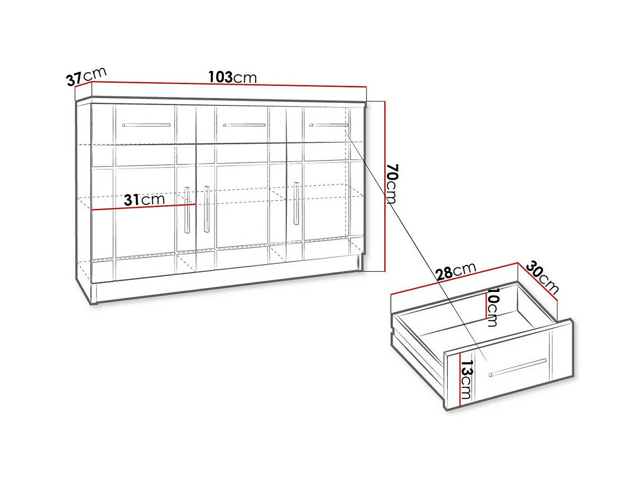 Cómoda Tucson 145, Roble Sonoma, Con cajones y puertas, Número de cajones: 3, 70x103x37cm