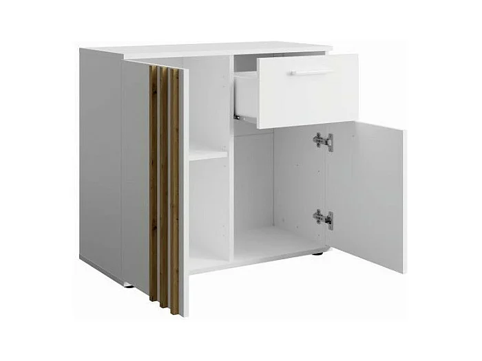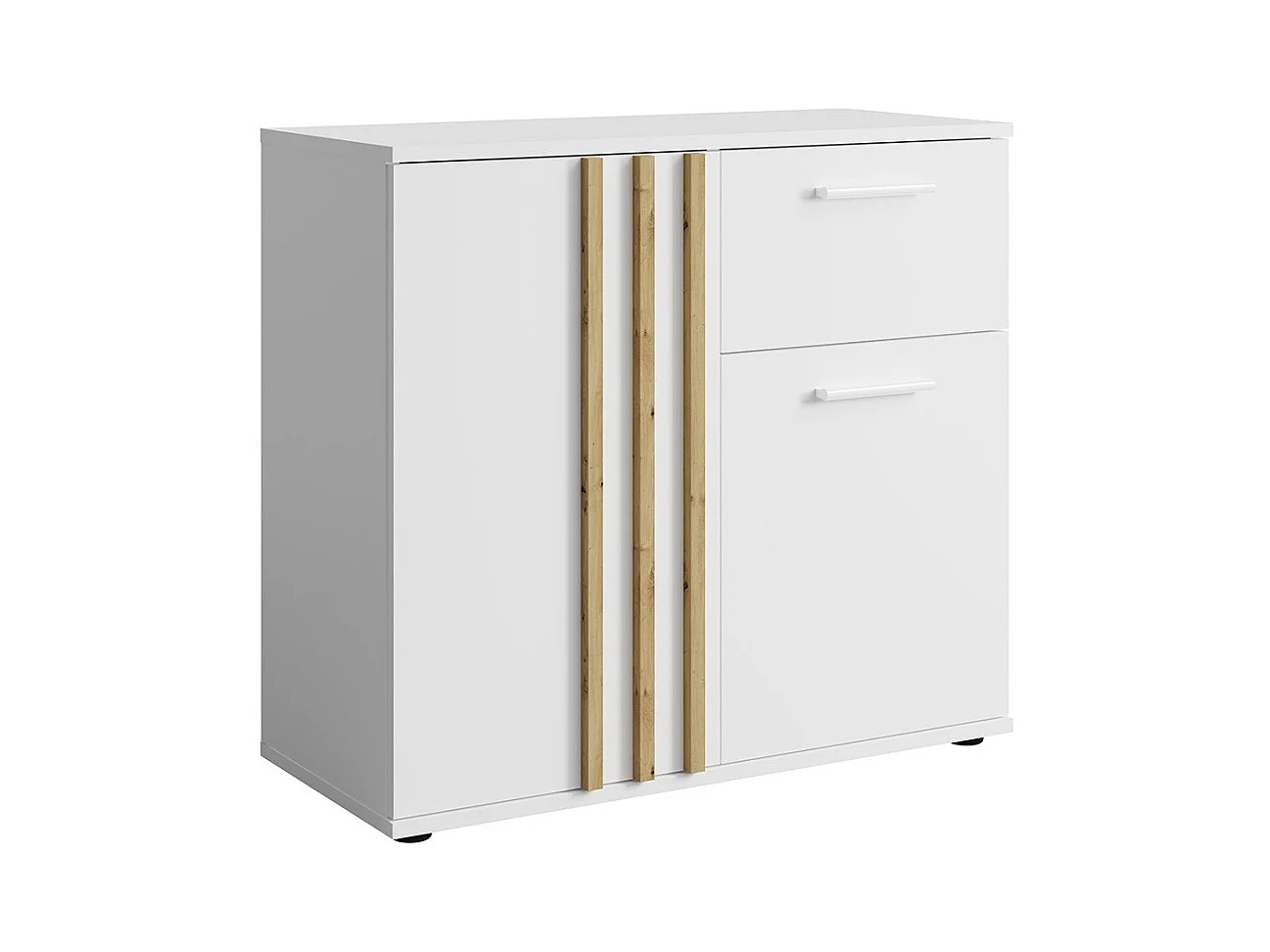 Cómoda VARIA - 2 puertas y 1 cajón - Diseño moderno en colores blanco y roble artesano