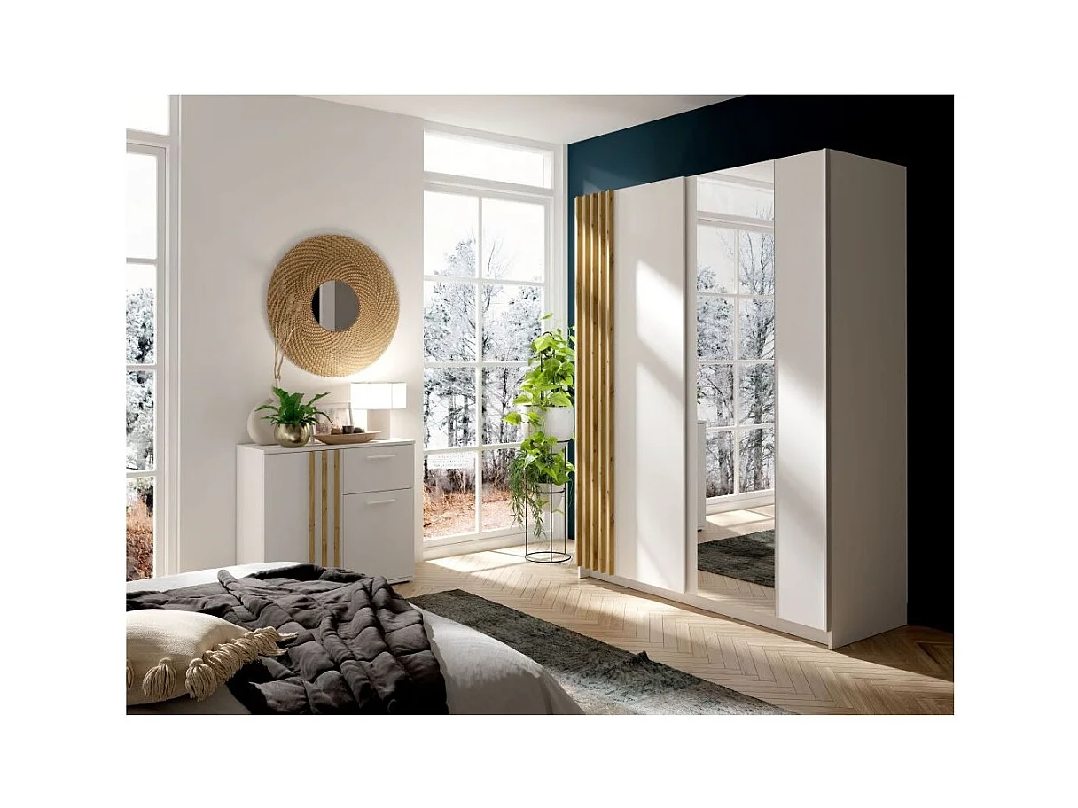 Cómoda VARIA - 2 puertas y 3 cajones - Diseño moderno en color blanco y roble artesano