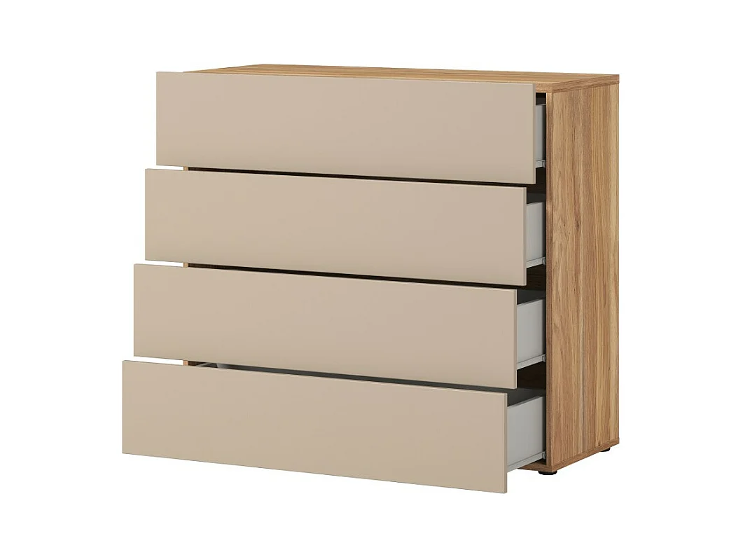 Cómoda ROMI – 4 cajones y 1 puerta – Color roble dab canyon – L110 × P43,5 × H87,5 cm – Habitación adulto