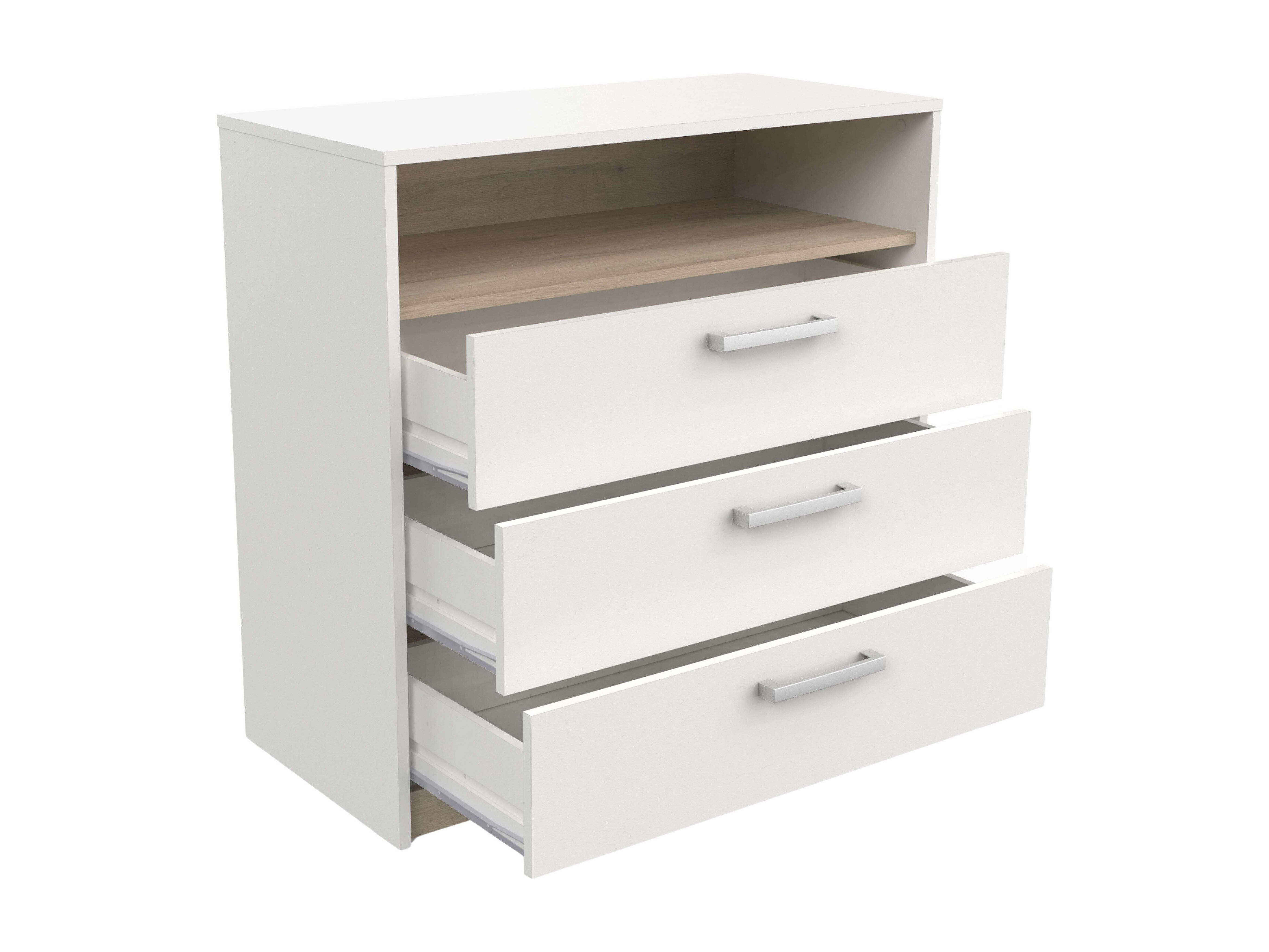Cómoda Watson 3 Cajones 1 Estante Blanco Roble Kronberg Melamina 81 cm