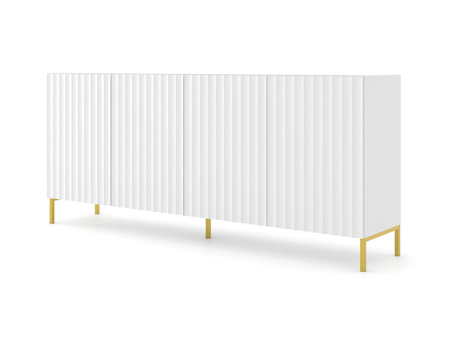 Cómoda WAVE 200 cm 4D fresada blanca mate patas de metal dorado