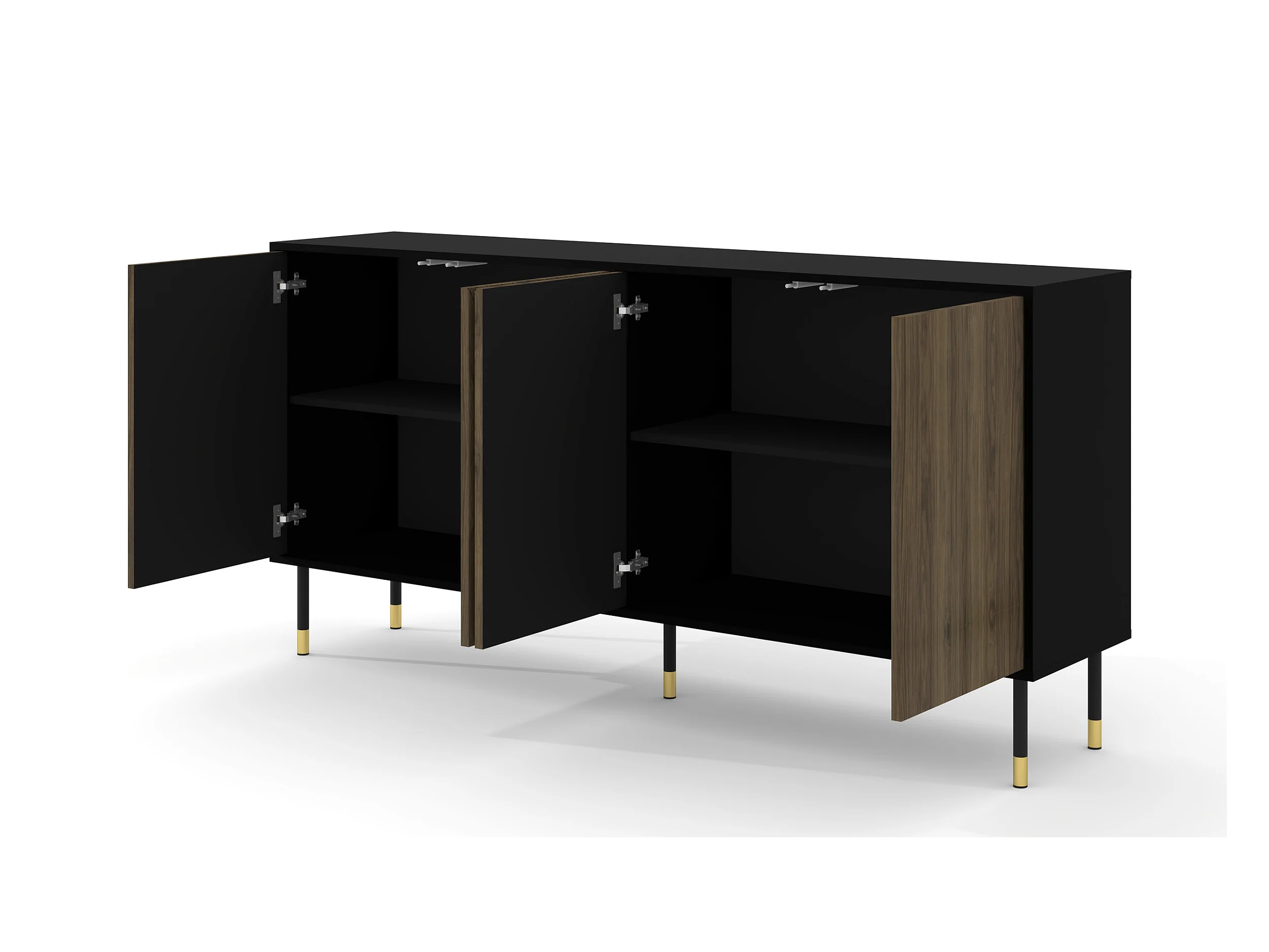 Cómoda SHERWOOD 4D 180 cm fresado sobre patas negro mate / roble catania