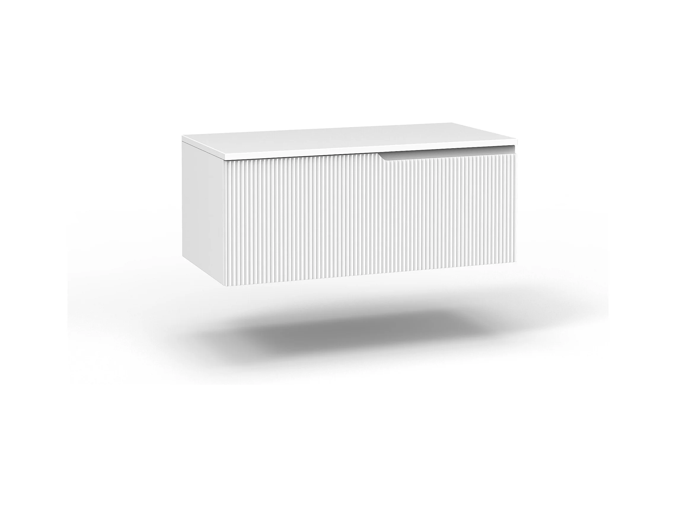 Mueble de Baño Lavabo Suspendido con 2 Cajones y Espejo Acabado en Blanco Brillante - Dim: 80 cm (Ancho) x 57 cm (Alto) x 45 cm (Fondo)