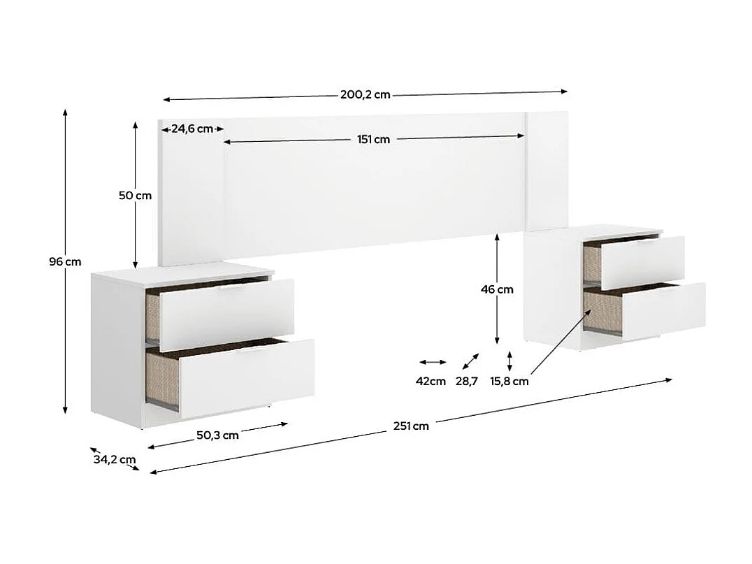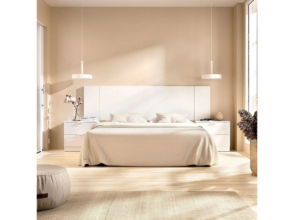 Composición de dormitorio Len cabecero con mesitas de noche blanco 96x200,2x34,2 cm