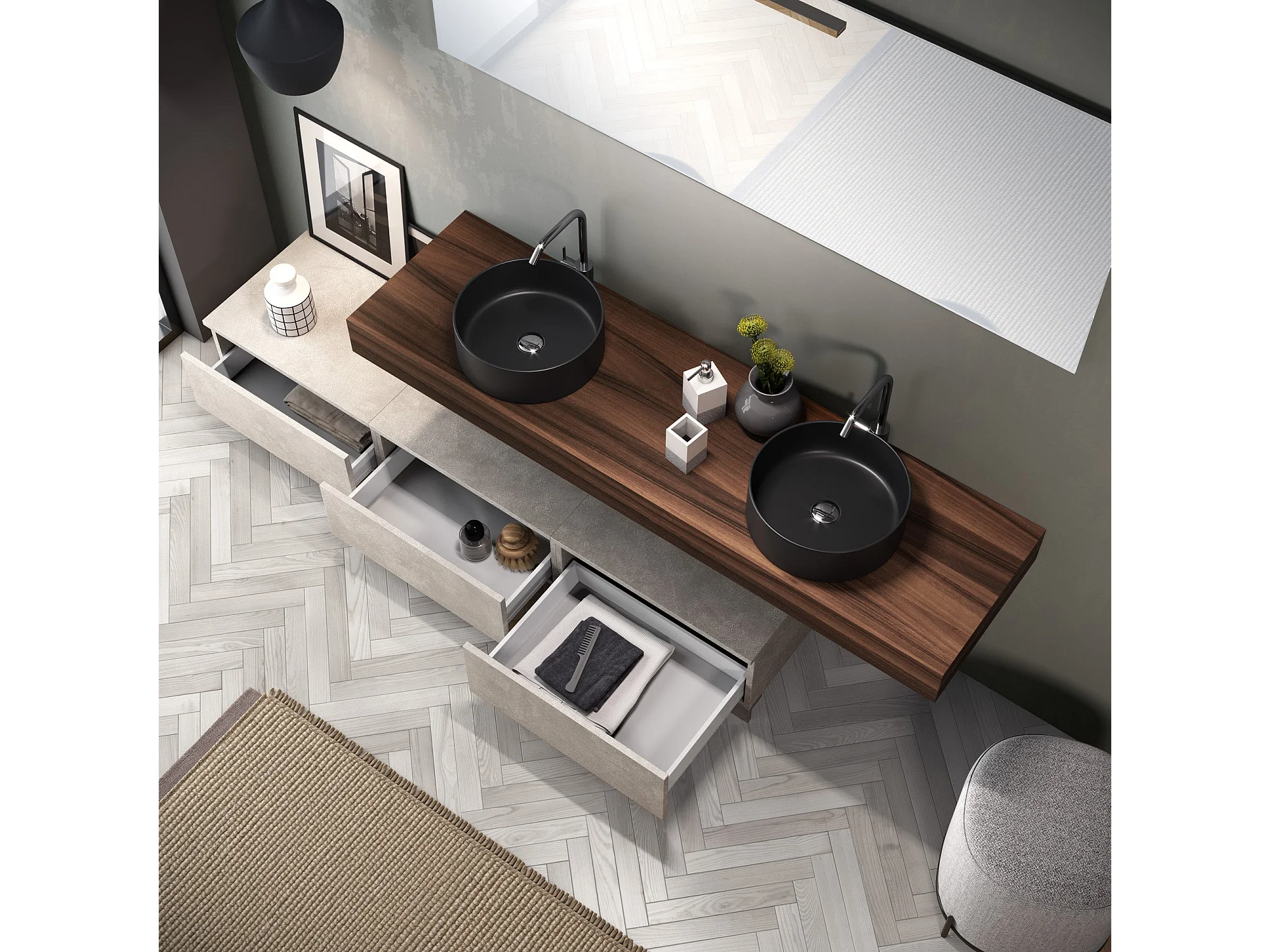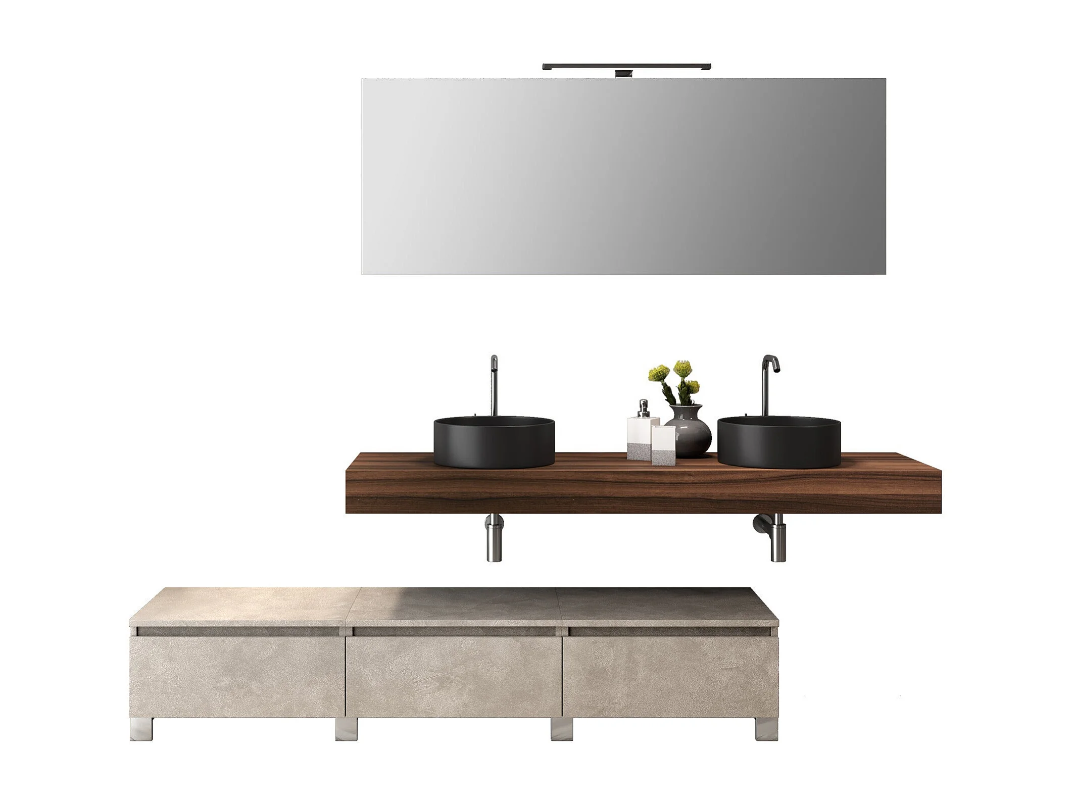 Composición de lavabo doble ASTRA de 9 piezas en nogal/havana piedra