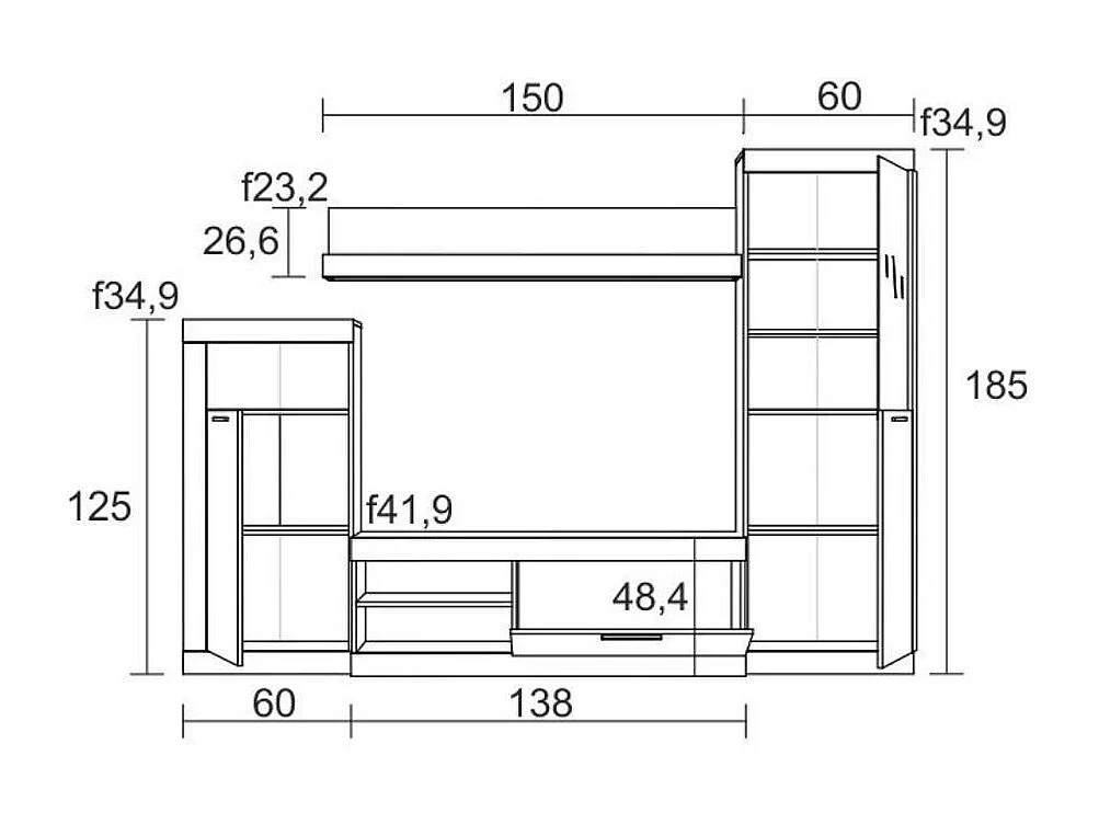 Composición de salón Escena 258 cm natural/pizarra