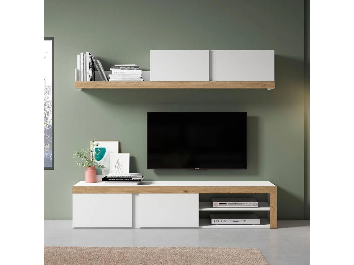 Composición de salón Fly 180cm blanco mate/naturale