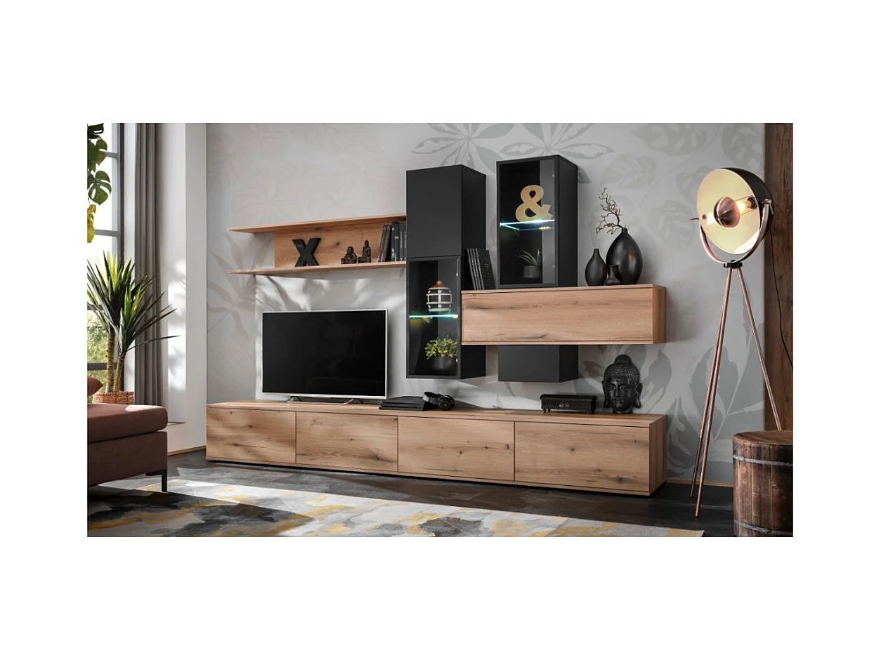 Conjunto de muebles de salón SWITCH XXV diseño, color roble y negro.