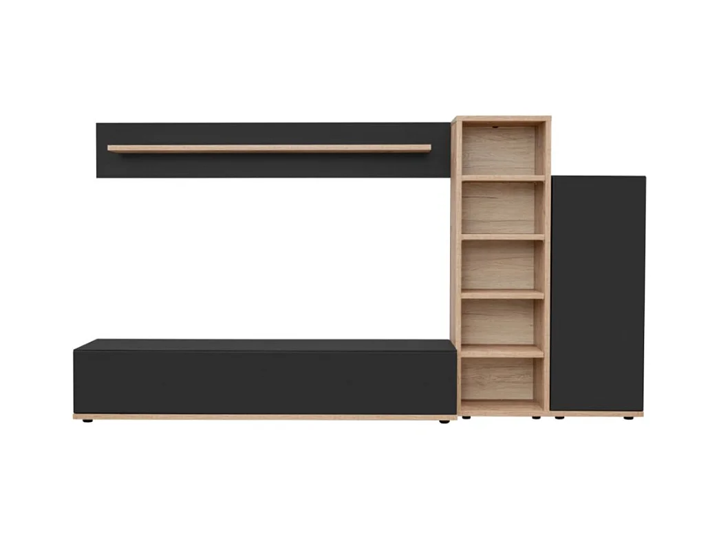 Composición mural RHYS – Mueble para TV, columnas y estanterías – Roble Ribbeck y negro mate