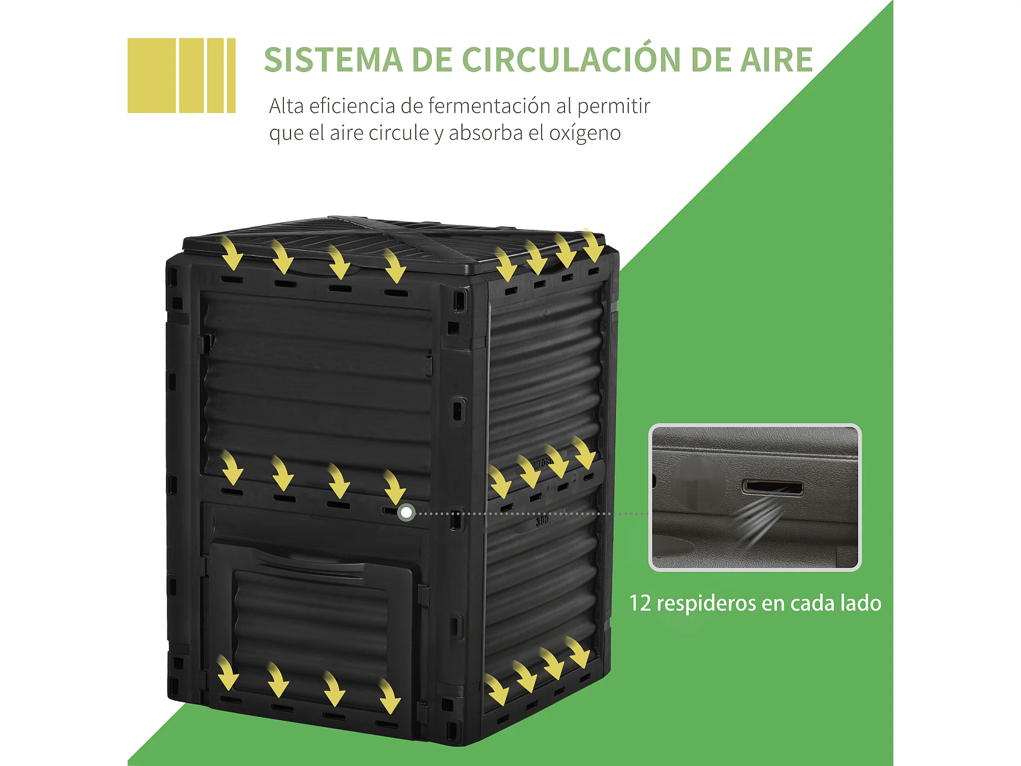 Compostador de jardín negro 60.5x60.5x81.5 cm Outsunny