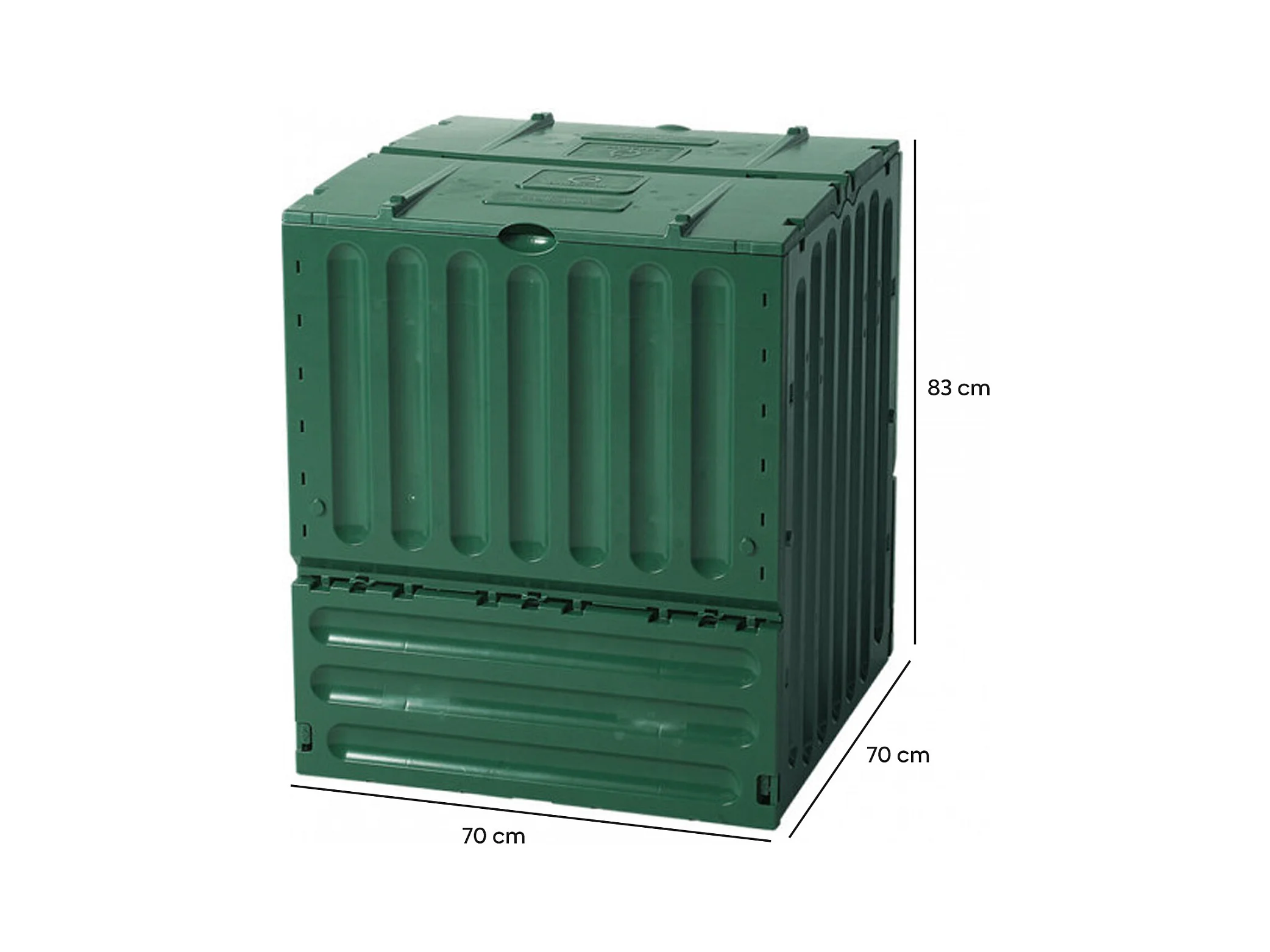 Compostador Ecológico Graf Eco King 70x70x83 cm de 400 Litros con Sistema de Ventilación y Paredes Térmicas, Color Verde
