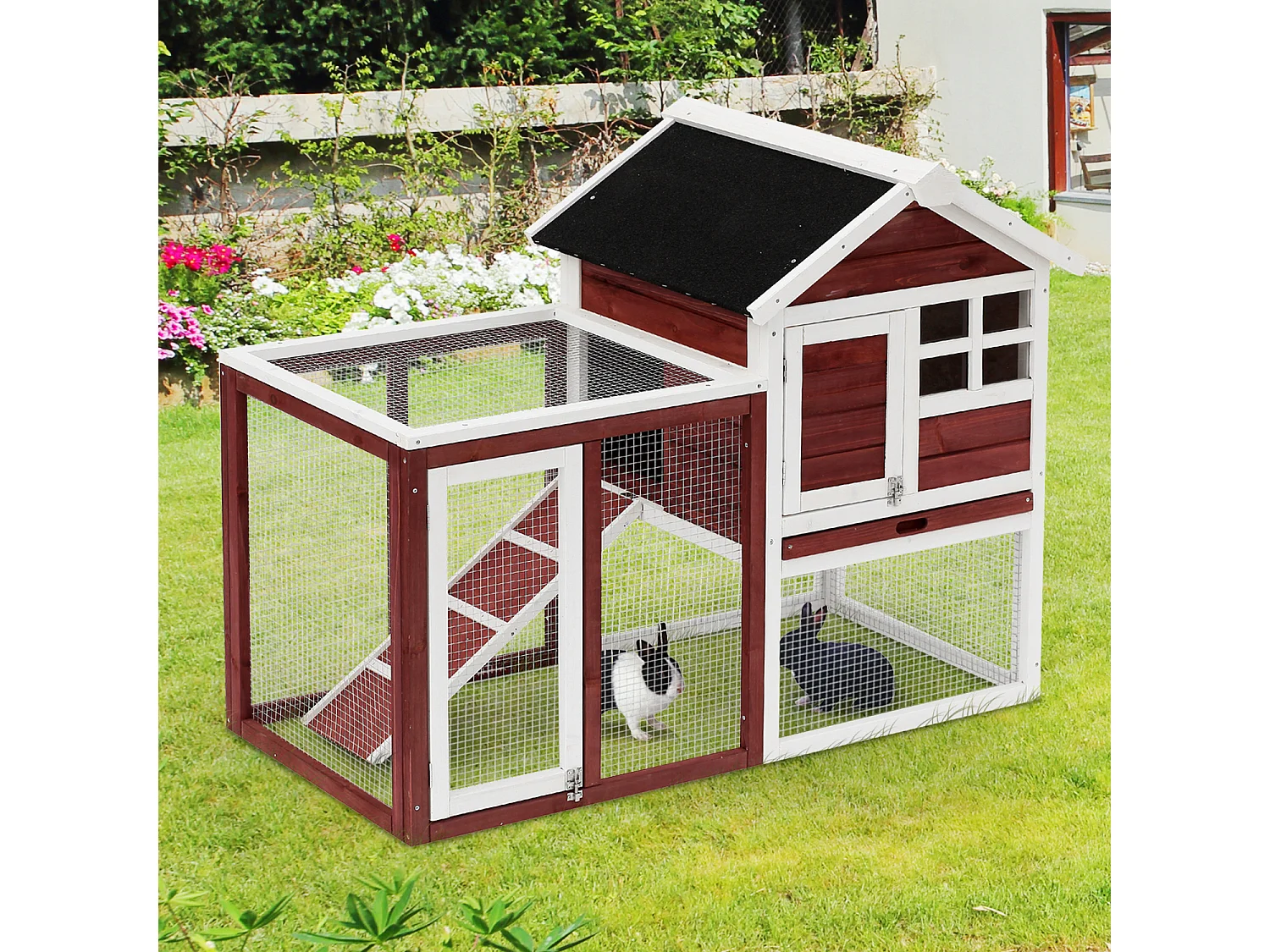 Conejera de madera exterior rojo 122x62.6x92 cm PawHut
