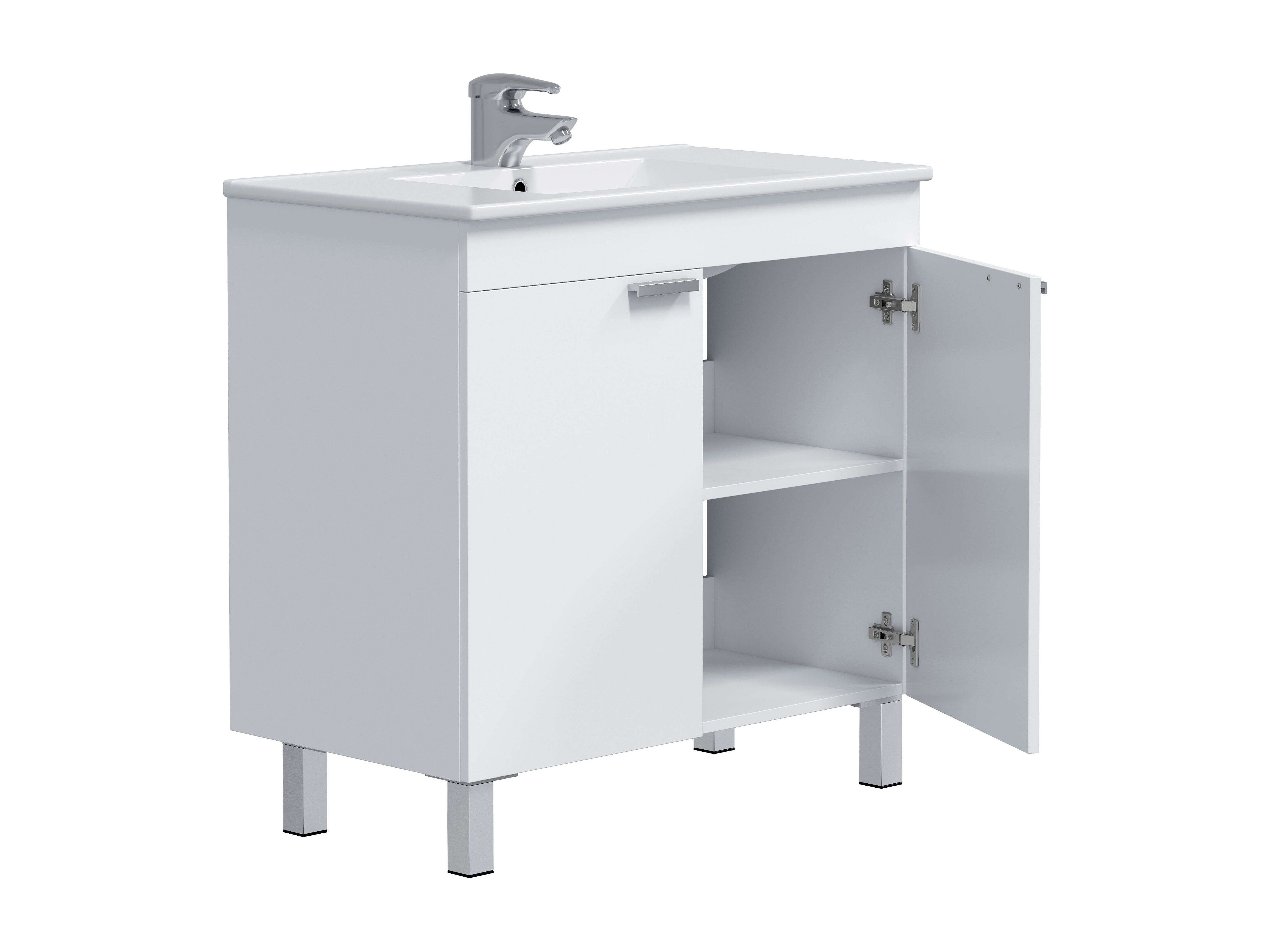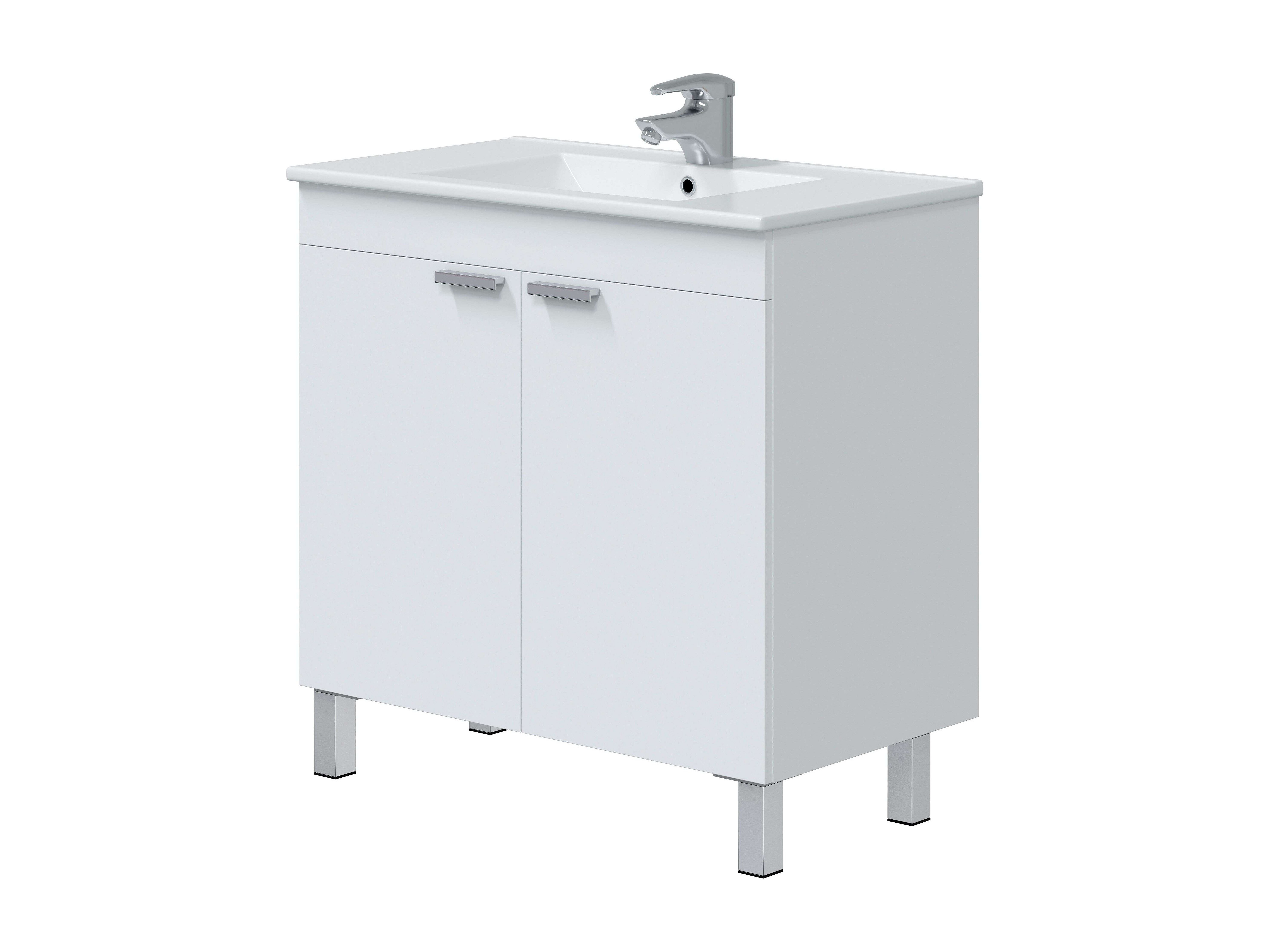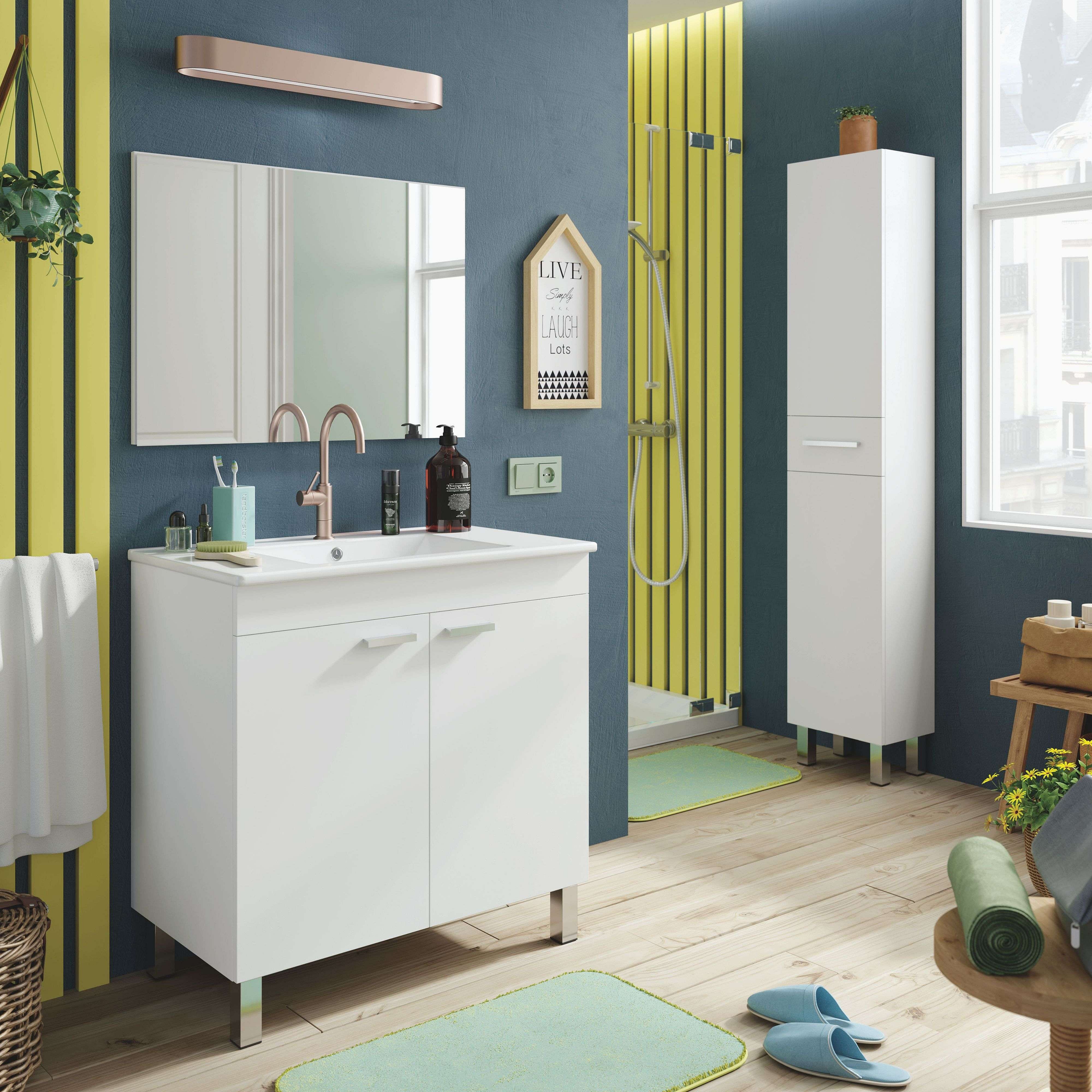 Juego de muebles de baño blancos colección RAVEN. Columna, mueble bajo lavabo, lavabo 80cm.