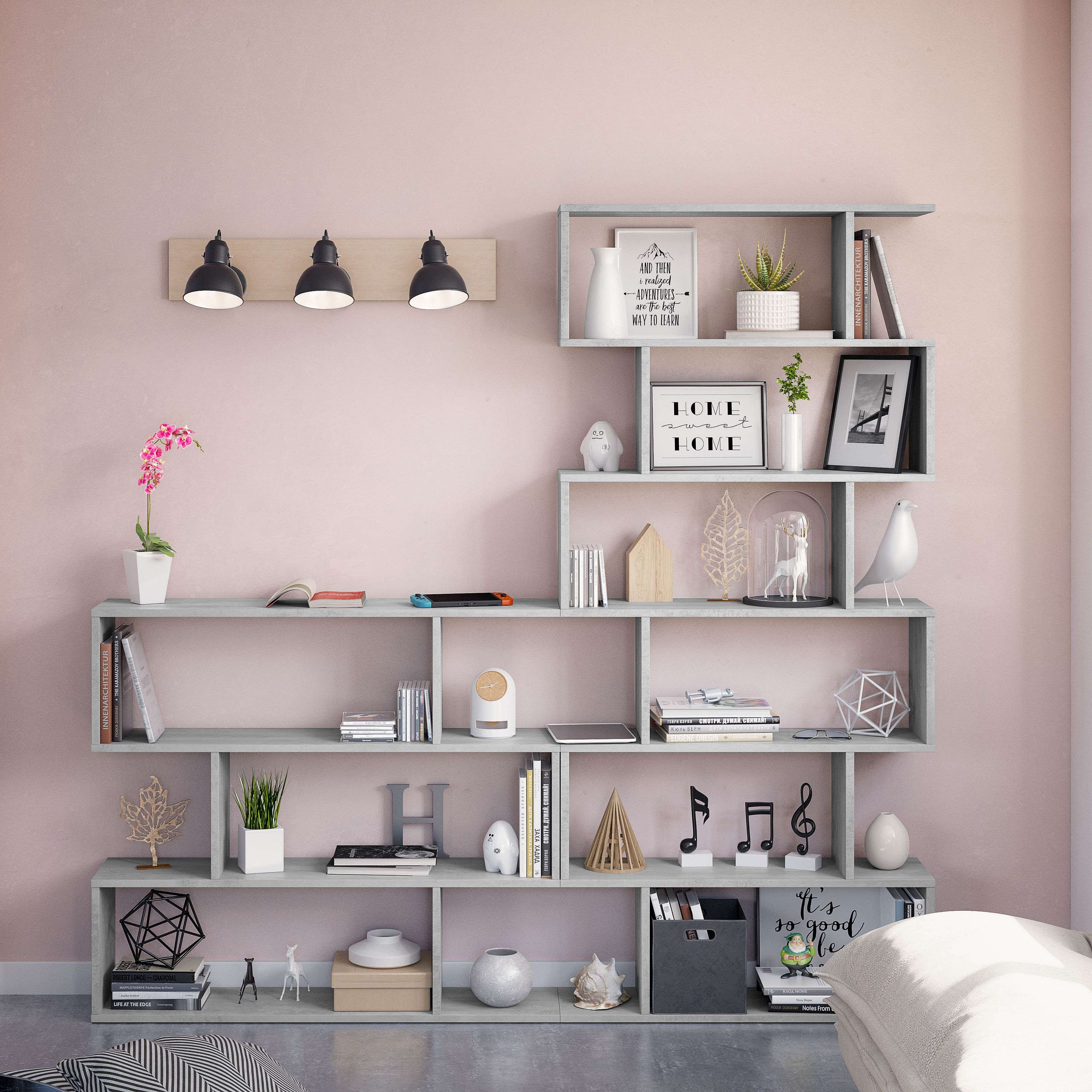 Conjunto 2 Estanterías Salón Gris Cemento (baja y alta)