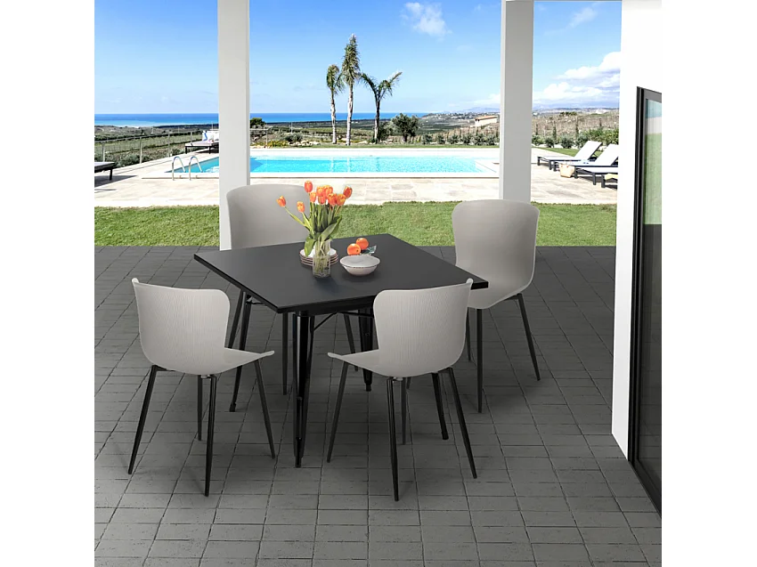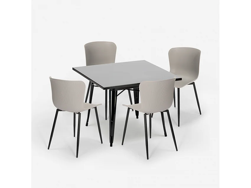 conjunto 4 sillas mesa 80 x 80 cm cuadrada estilo industrial wrench dark - Gris