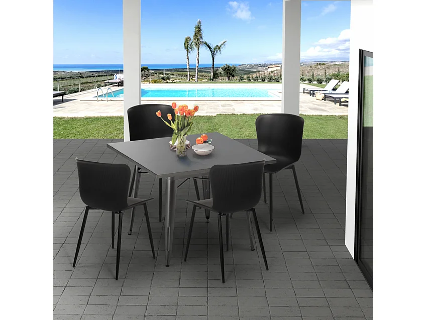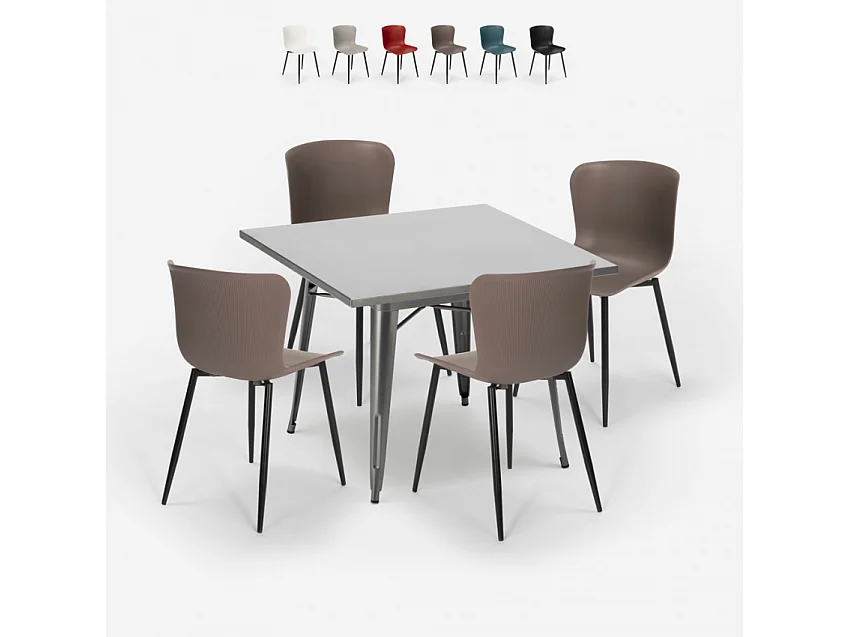conjunto 4 sillas mesa cuadrada 80 x 80 cm diseño industrial wrench - Gris Oscuro